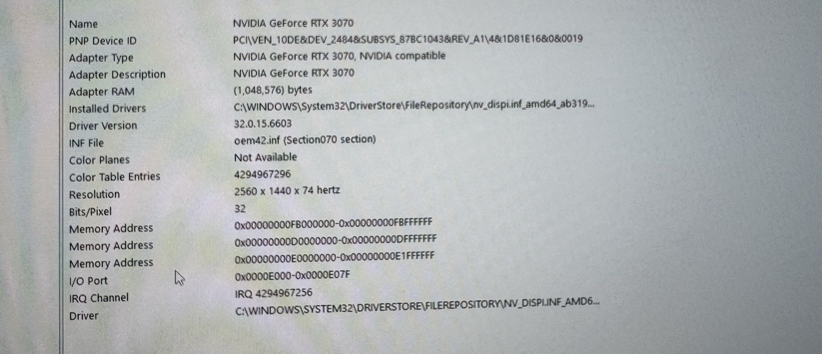 Chipset/GPU Model: NVIDIA GeForce RTX 3070