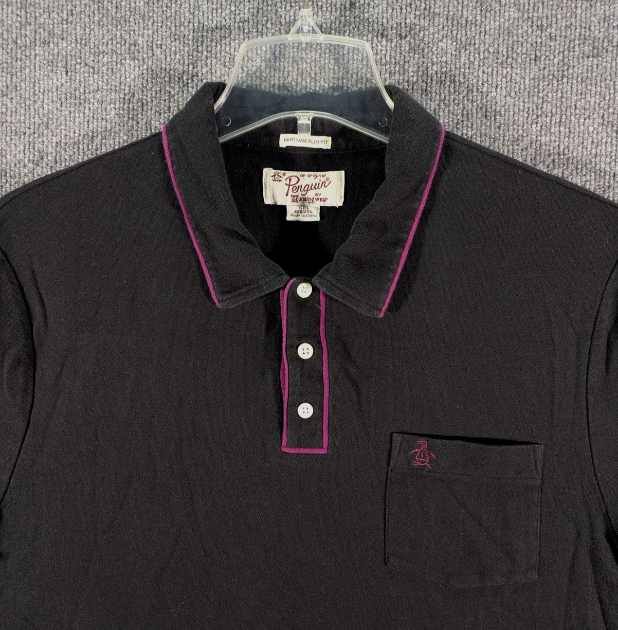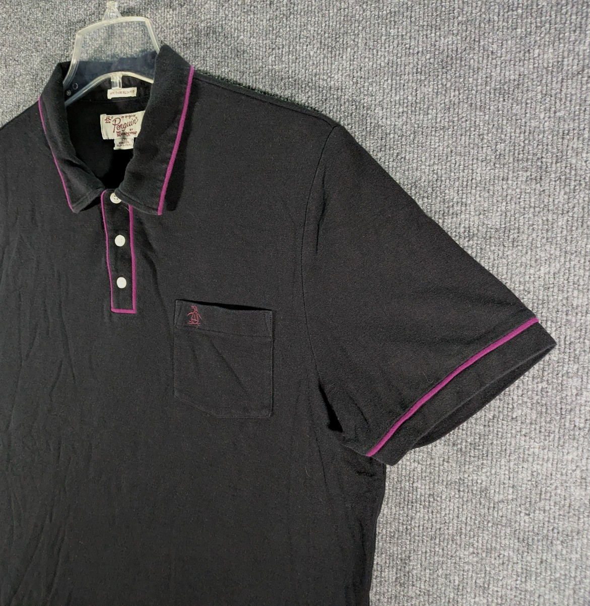 Penguin by Munsingwear Pocket Polo Shirt Mens XXL Heritage Slim Fit Black Purple