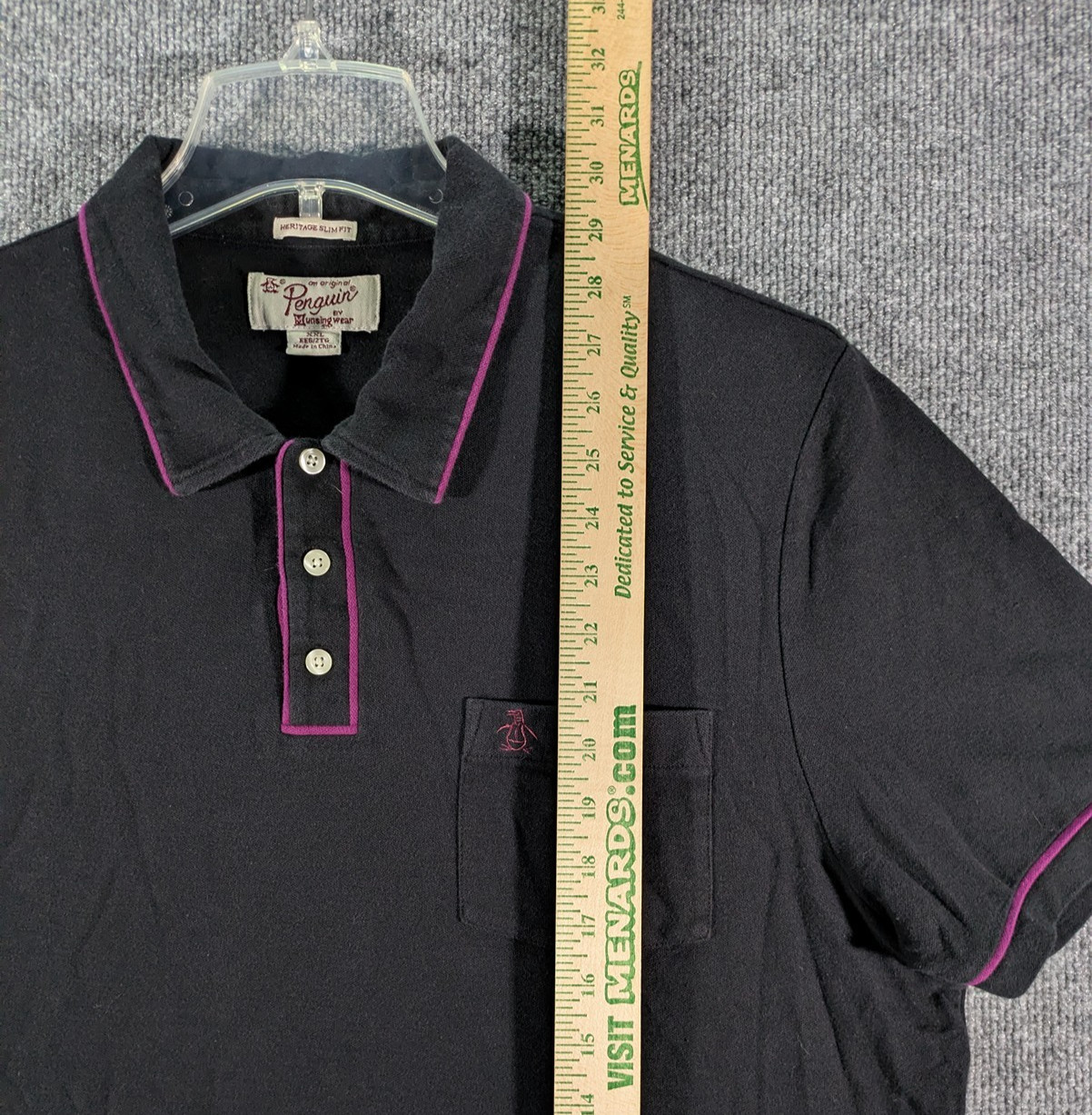 как выглядит Penguin by Munsingwear Pocket Polo Shirt Mens XXL Heritage Slim Fit Black Purple фото