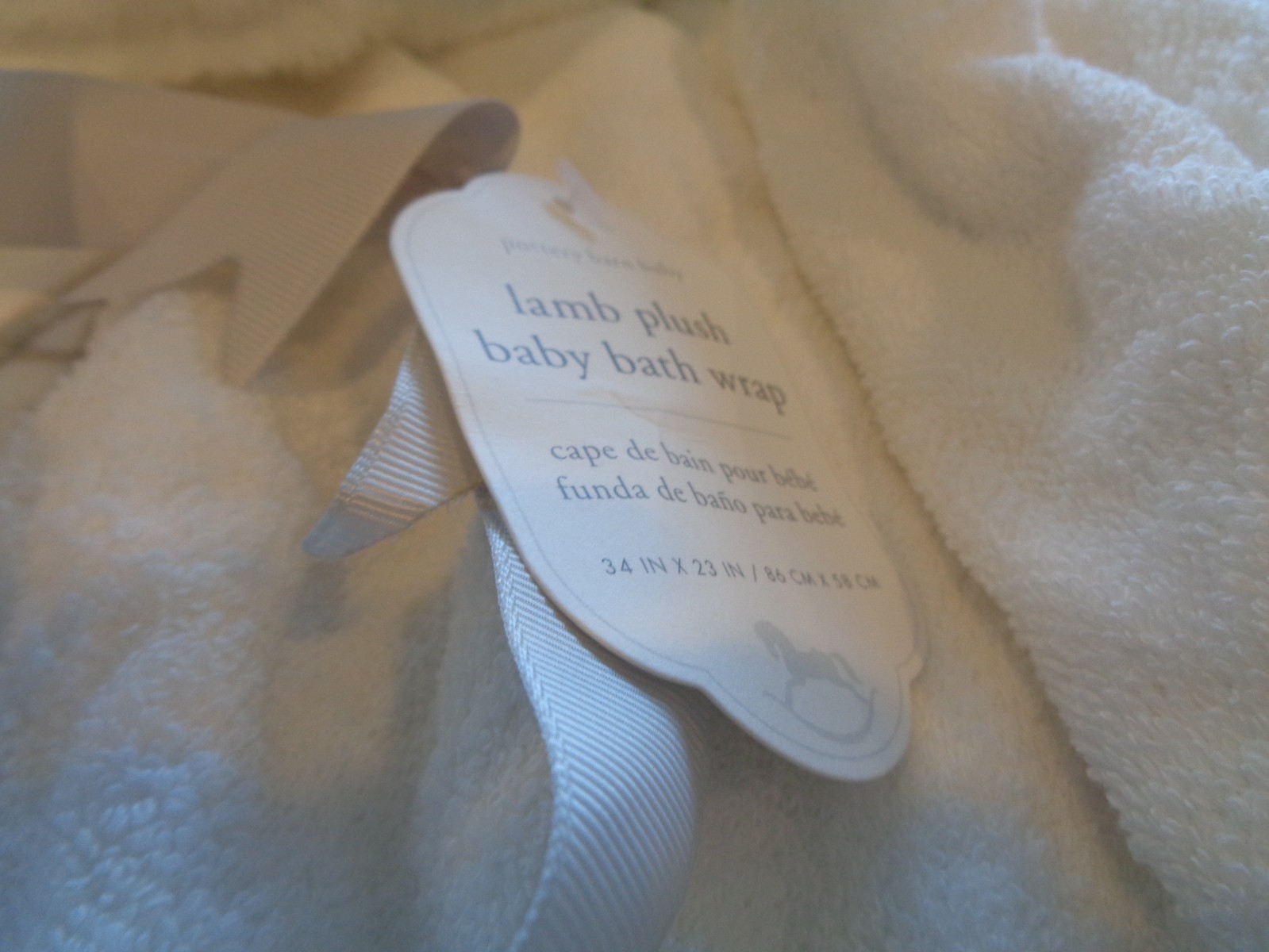 Pottery Barn Kids lamb fur plush baby bath wrap 34 X 23 mono Albina new