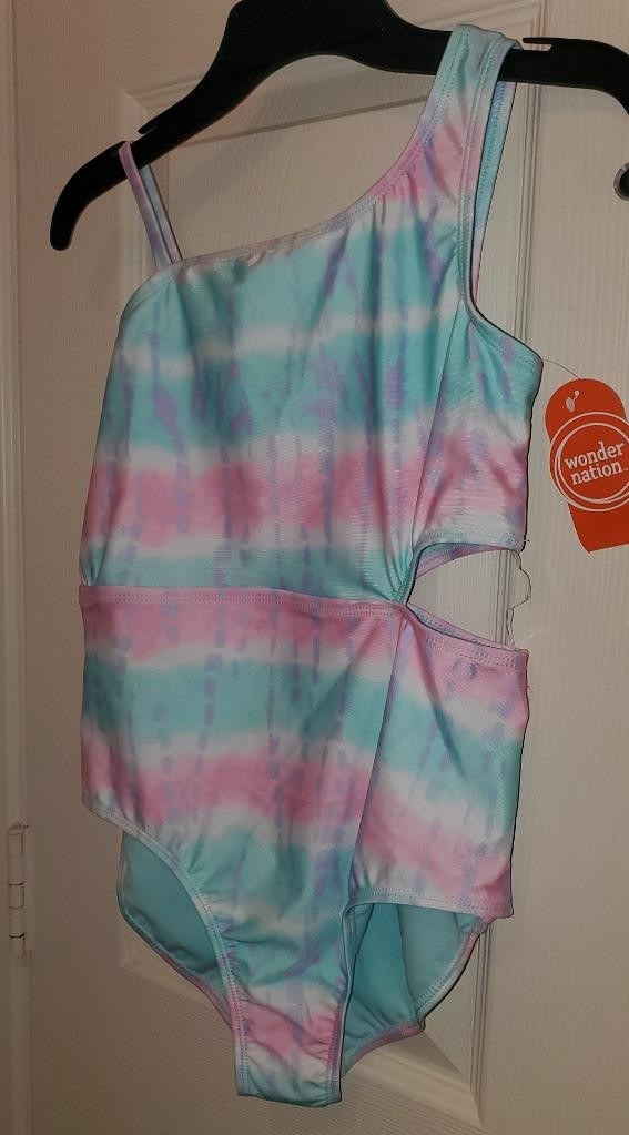 NEW Girls Wonder Nation One Piece Swimsuit Side Cutout Aqua Reef Size L 10/12
