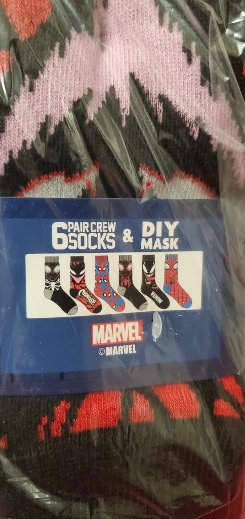Marvel Spiderman 6-Pair CREW SOCKS DIY MASK Shoe Size 6-12 NEW