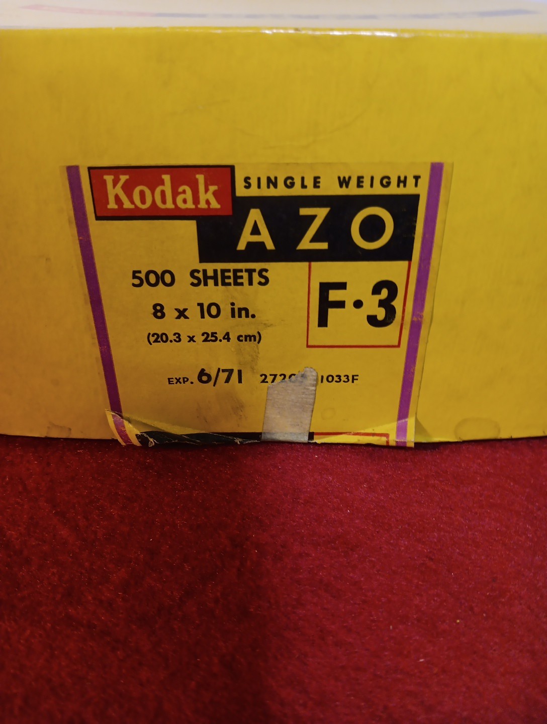 Kodak Single Weight AZO 8x10 F3 Approx 250 Sheet Box Photographic Paper Exp 6/71