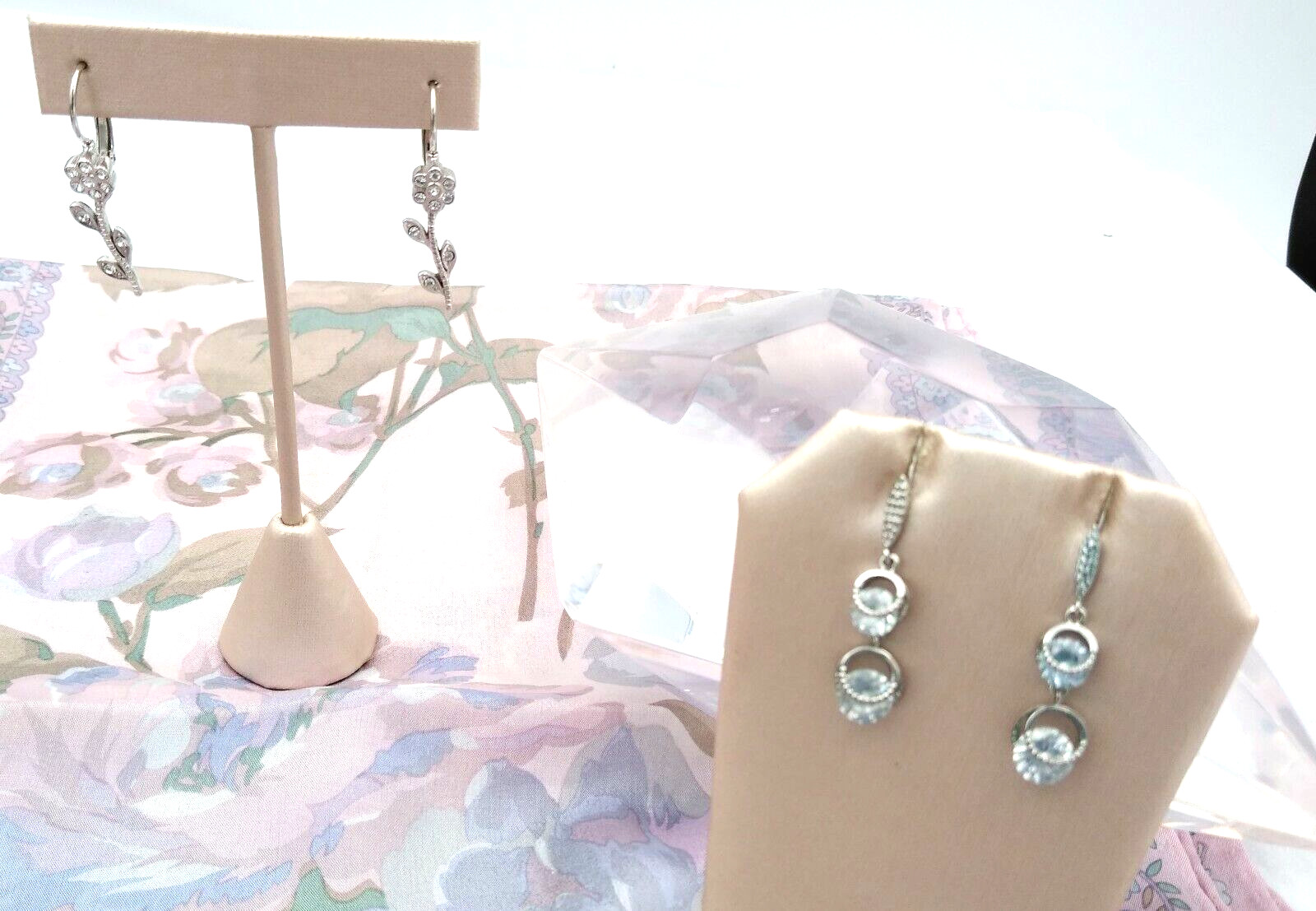 Dainty Delicate 2 Pair Silver Tone Dangle Flower Rhinestone Earrings