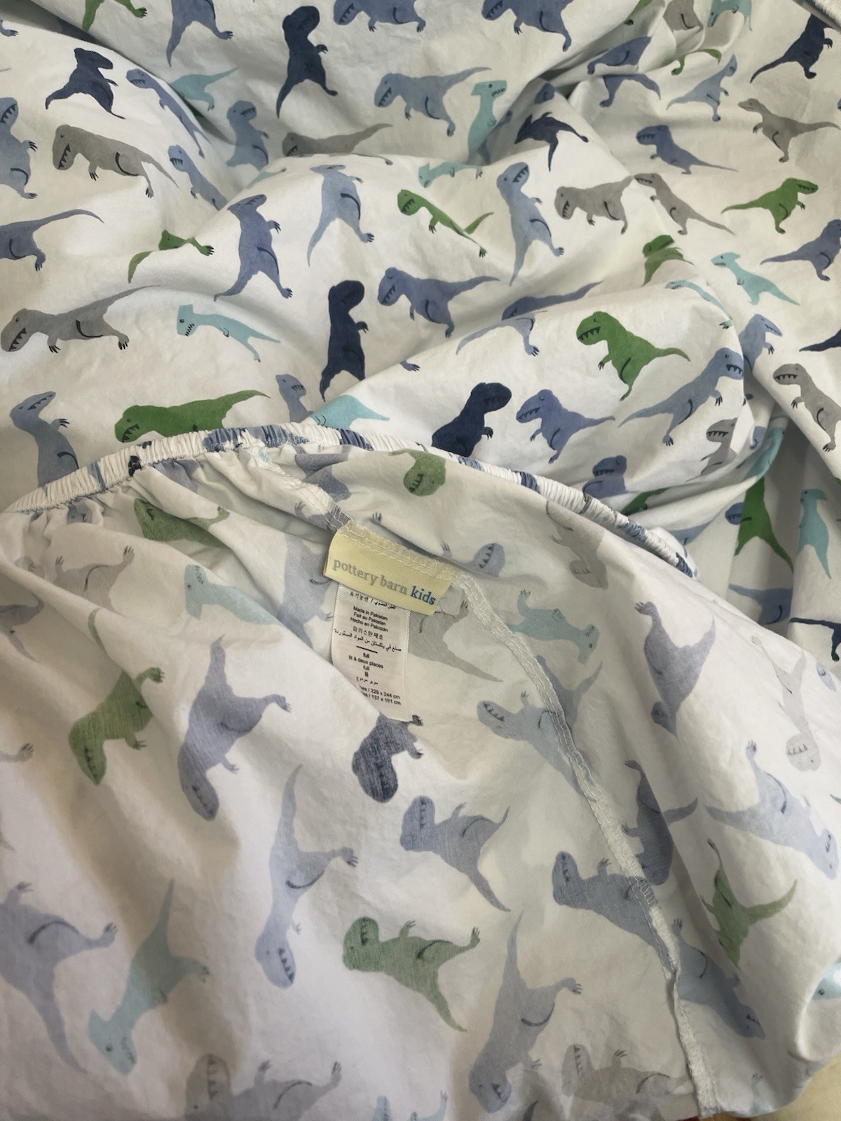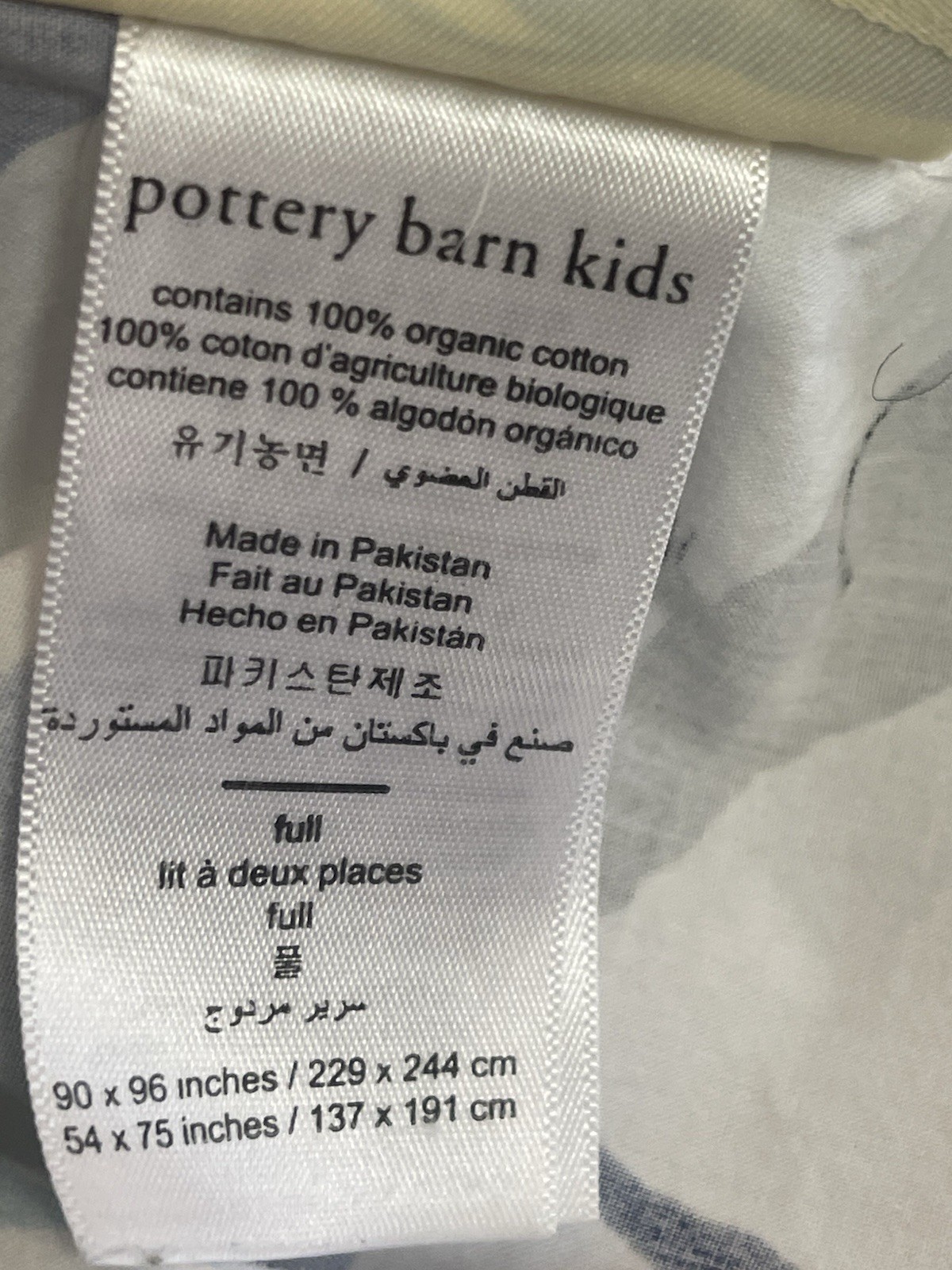Pottery Barn Kids Warren Dinosaur Full Fitted Sheet Organic Cotton White Blue