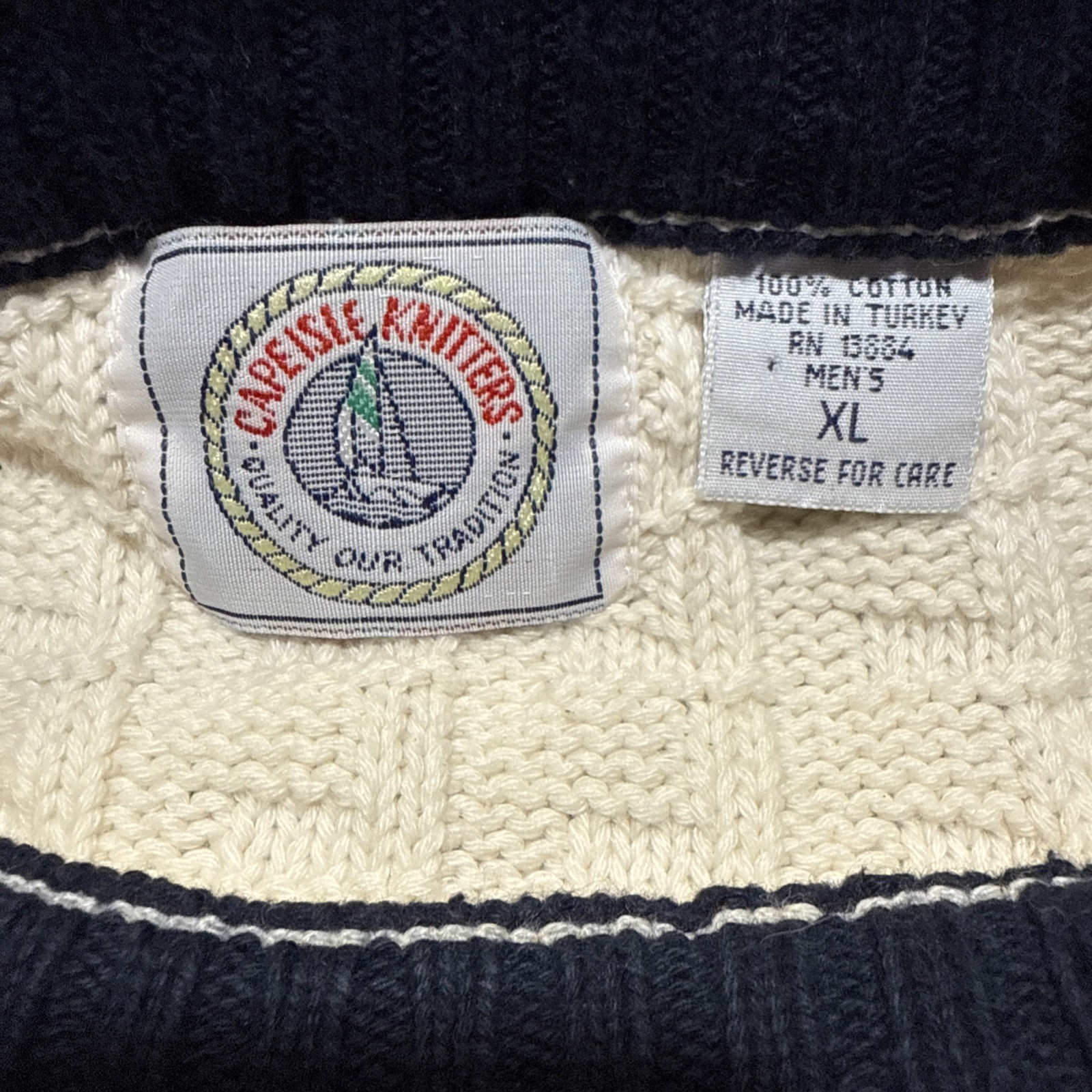 Vintage Sweater Cape Isle Knitters Sail Boat Chunky Knit Beige Mens Large Ocean