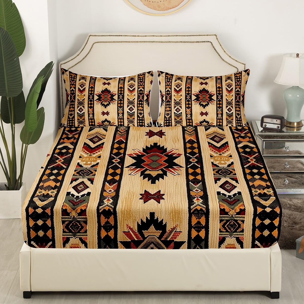 Wood Southwestern Bed Sheets Set Full Size Geometric Sheet Set Tribal Native ...