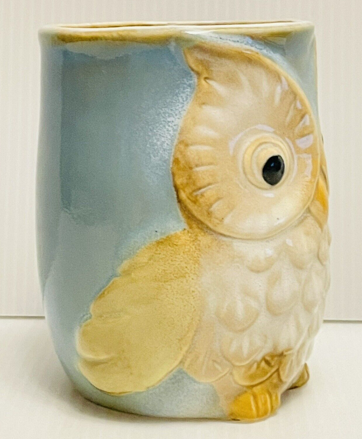 Owl Mug Blue Green 12oz Glossy Textured Porcelain Ceramic Mug Burton Burton