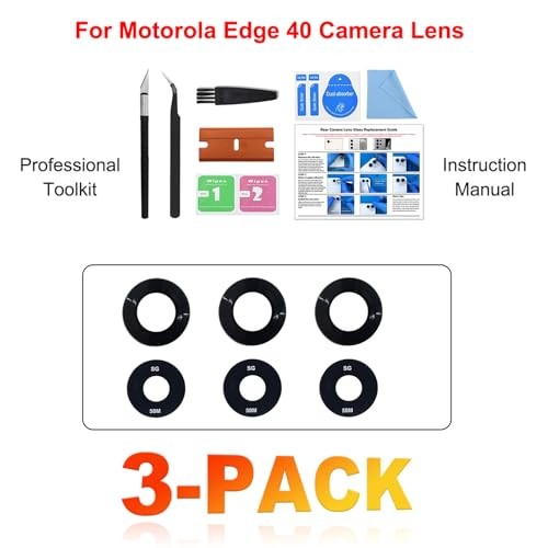 3 Pack for Moto Edge 40 Back Rear Camera Lens Glass Replacement, Cellphone