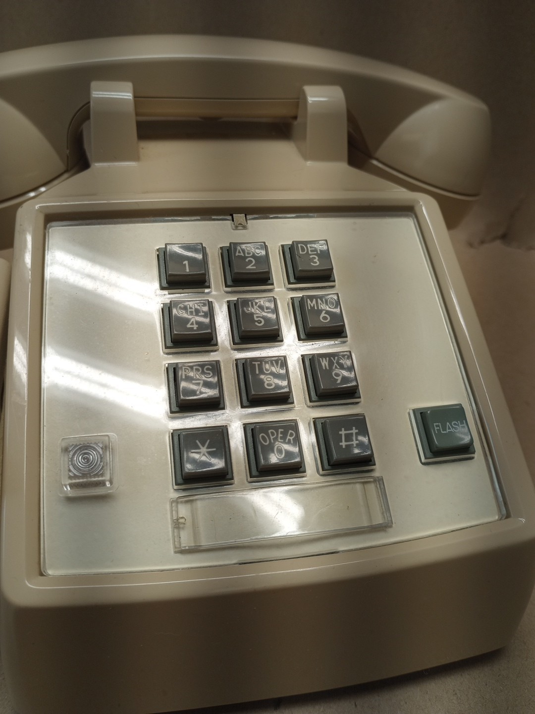 Vintage Beige Push Button Desk Phone Telephone with Walker Receiver Amplifier