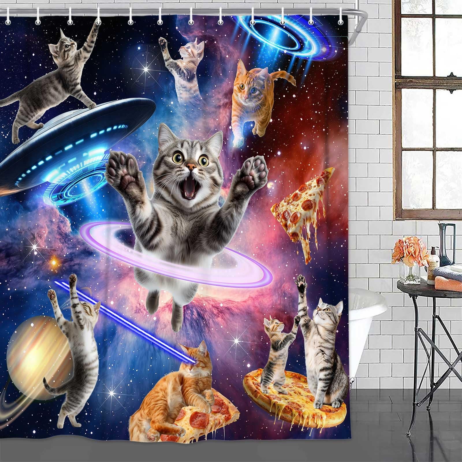 Funny Cat Shower Curtain Cool Outer Space Shower Curtains for Boys Kids, Hila...