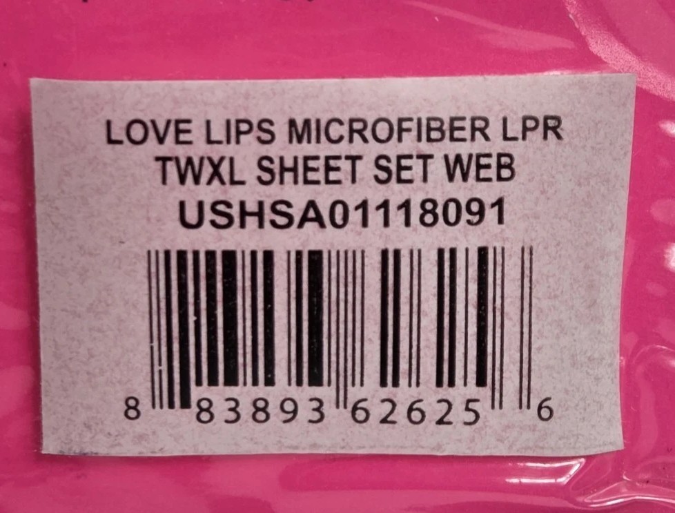 Betsey Johnson LOVE LIPS Sheet Set TWXL Microfiber Easy Care Wrinkle Resistant