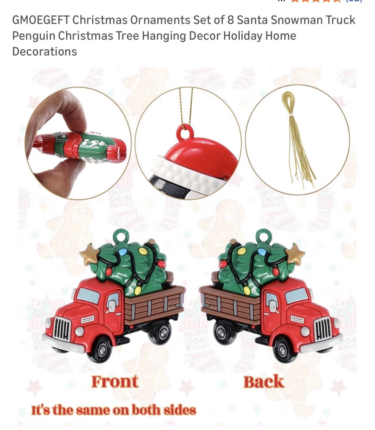 как выглядит CHRISTMAS ornaments Santa,Snowman,red Truck,Christmas Tree,stocking фото