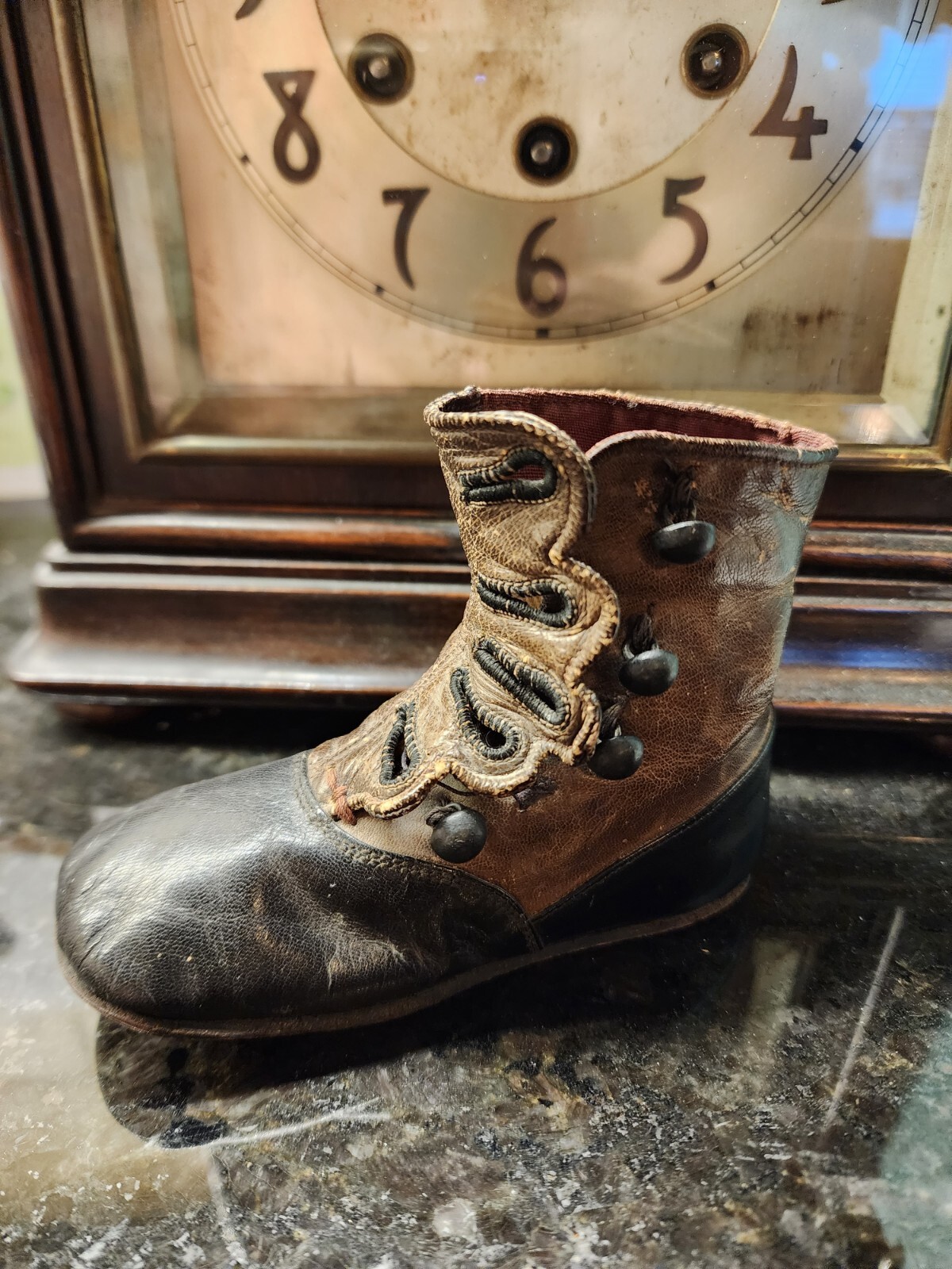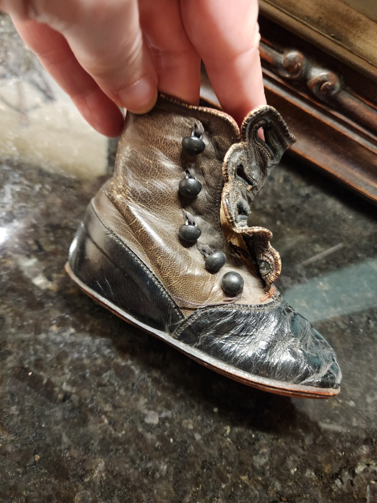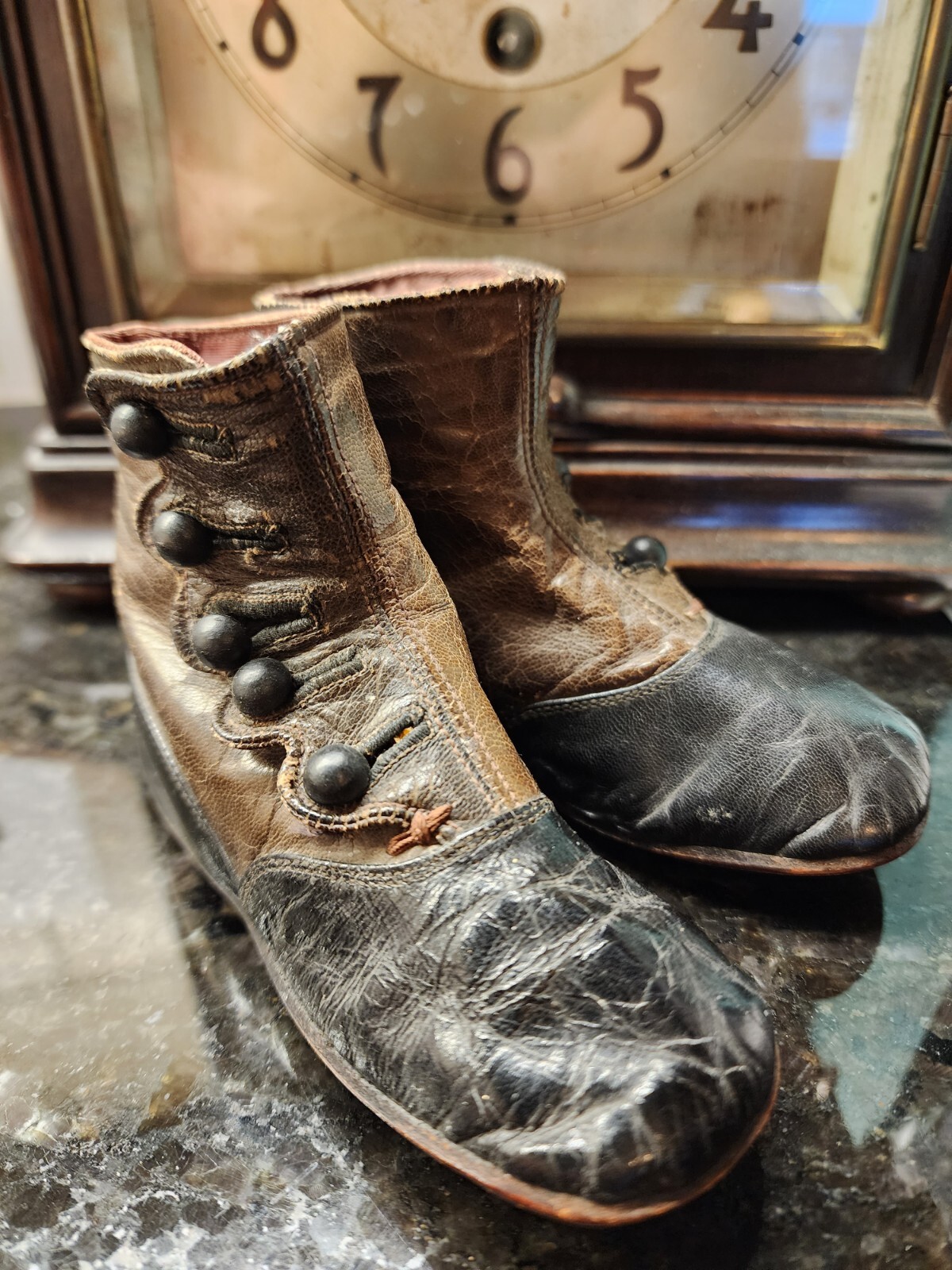Victorian Baby Shoes High Top Leather Button Two Toned Black Brown Antique