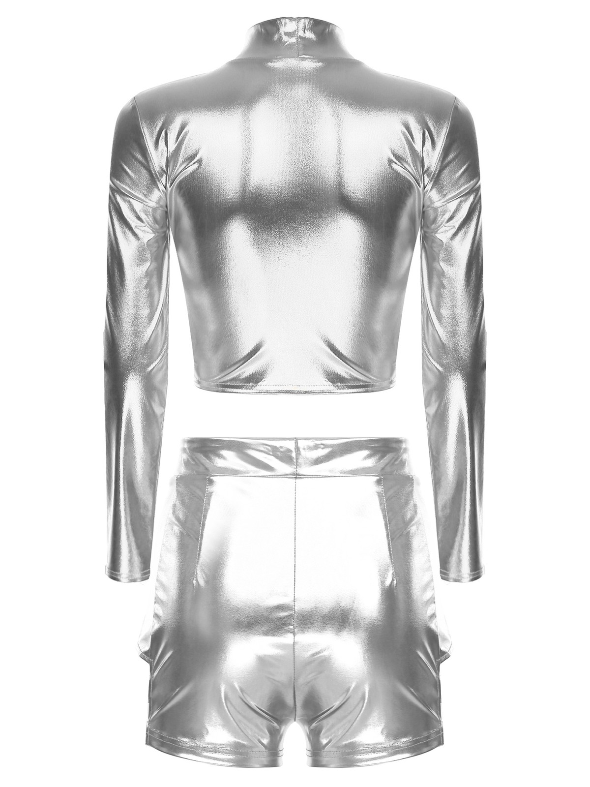 Womens Sets Party Dancewear Musical Outfit 2 Piece Metallic Dance Shiny Cutout