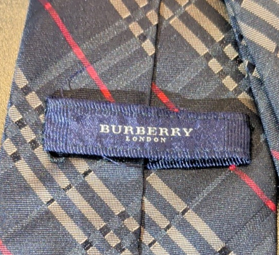 Burberry London Nova Check Tie Black Bronze Red Plaid On Black 100 Silk Italy