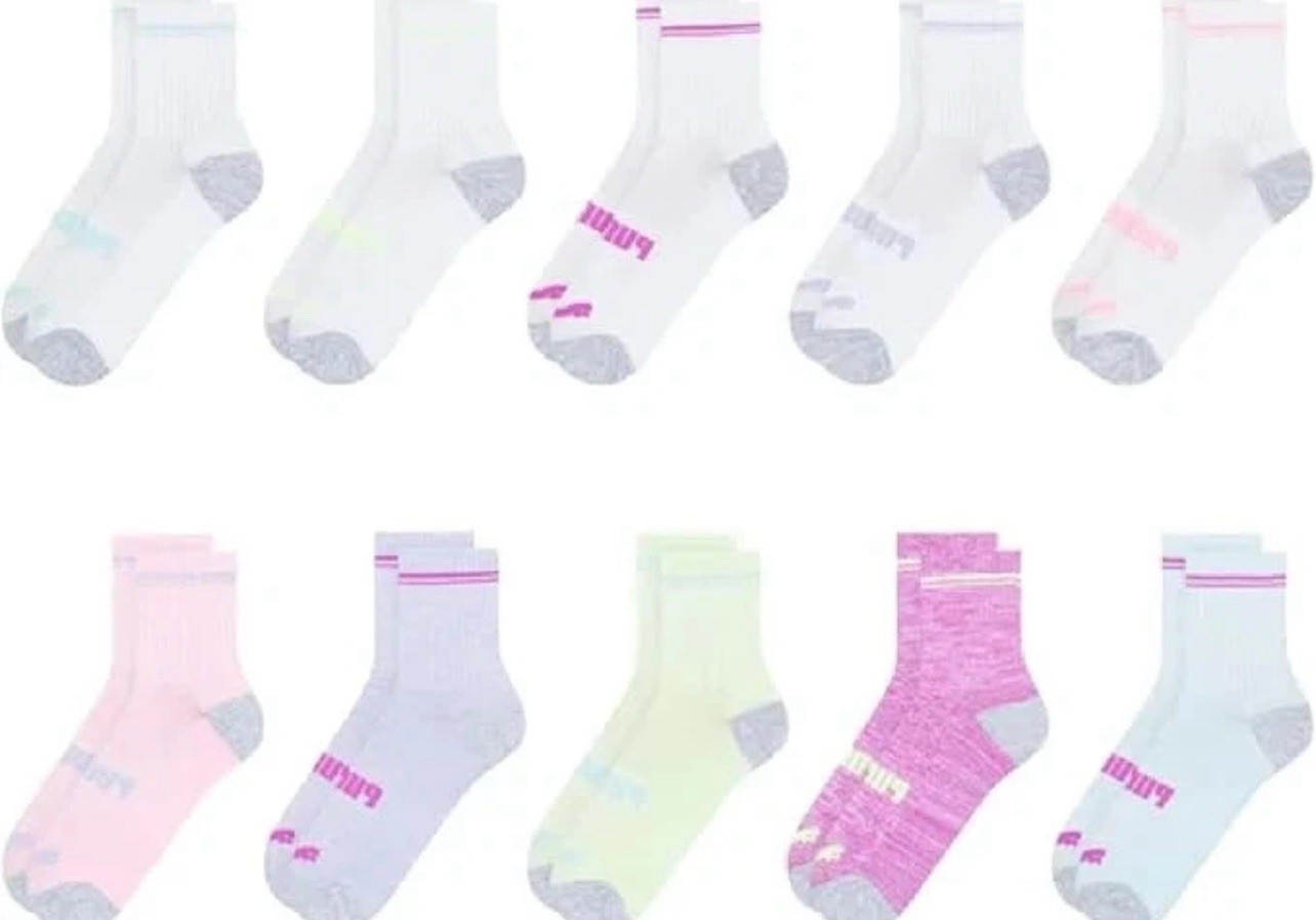 LOT OF 2 Packs Puma Kids Low Crew Socks 5 or 10 pairs New Open Packs, 20 PAIRS