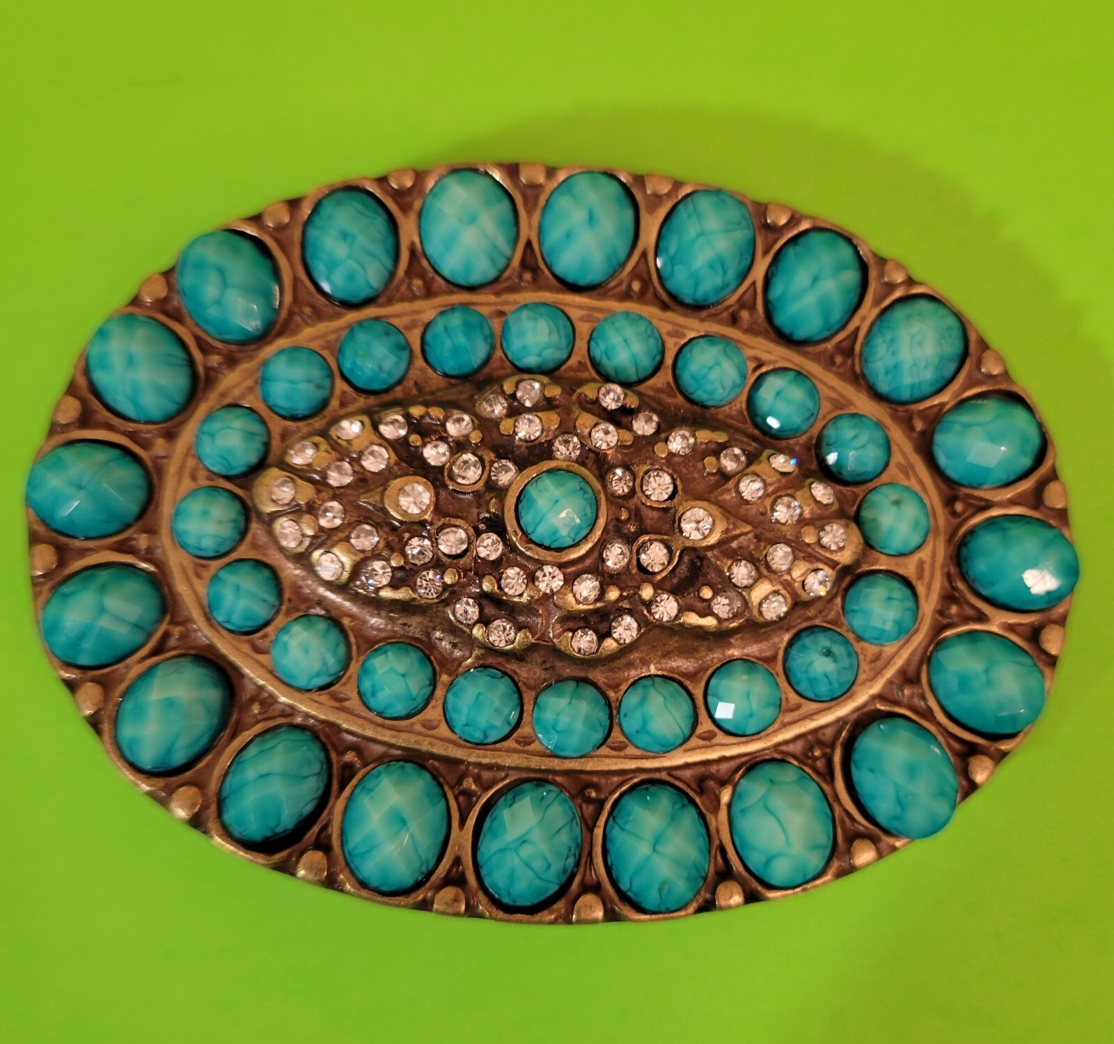 Belt Buckle Western Faceted Faux turquoise stones Rhinestones Beautiful 4 Gc