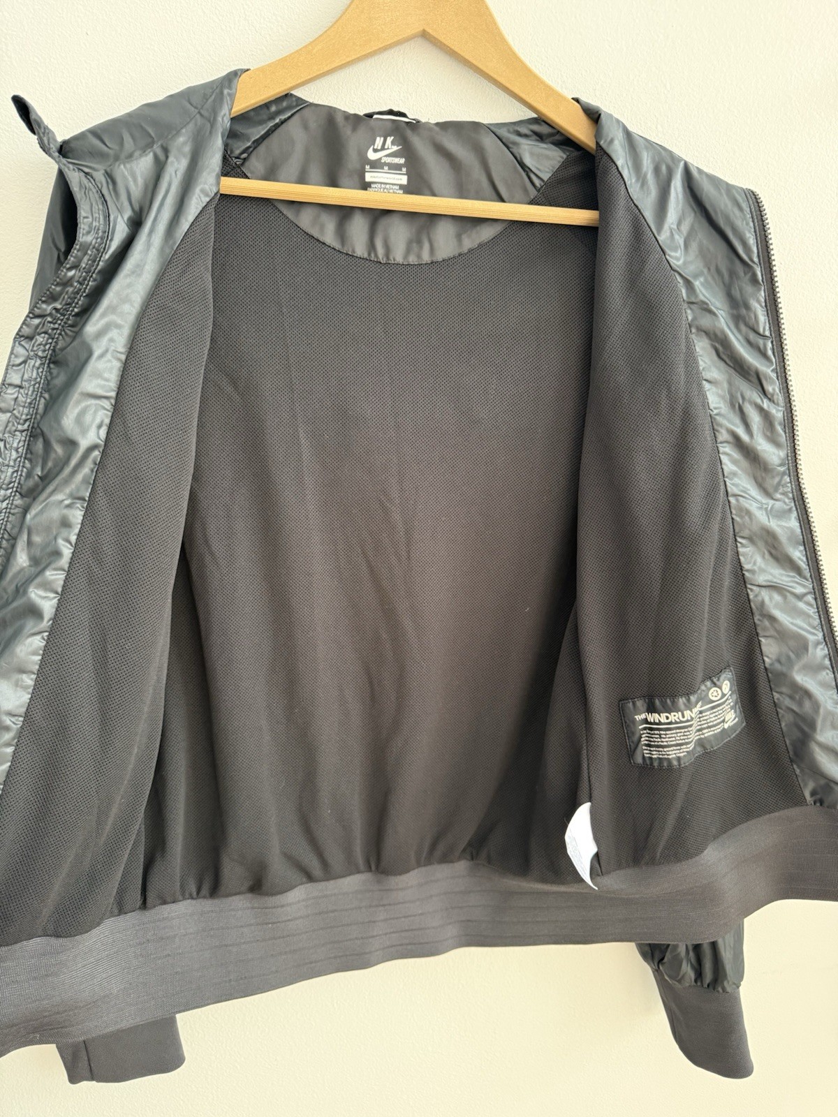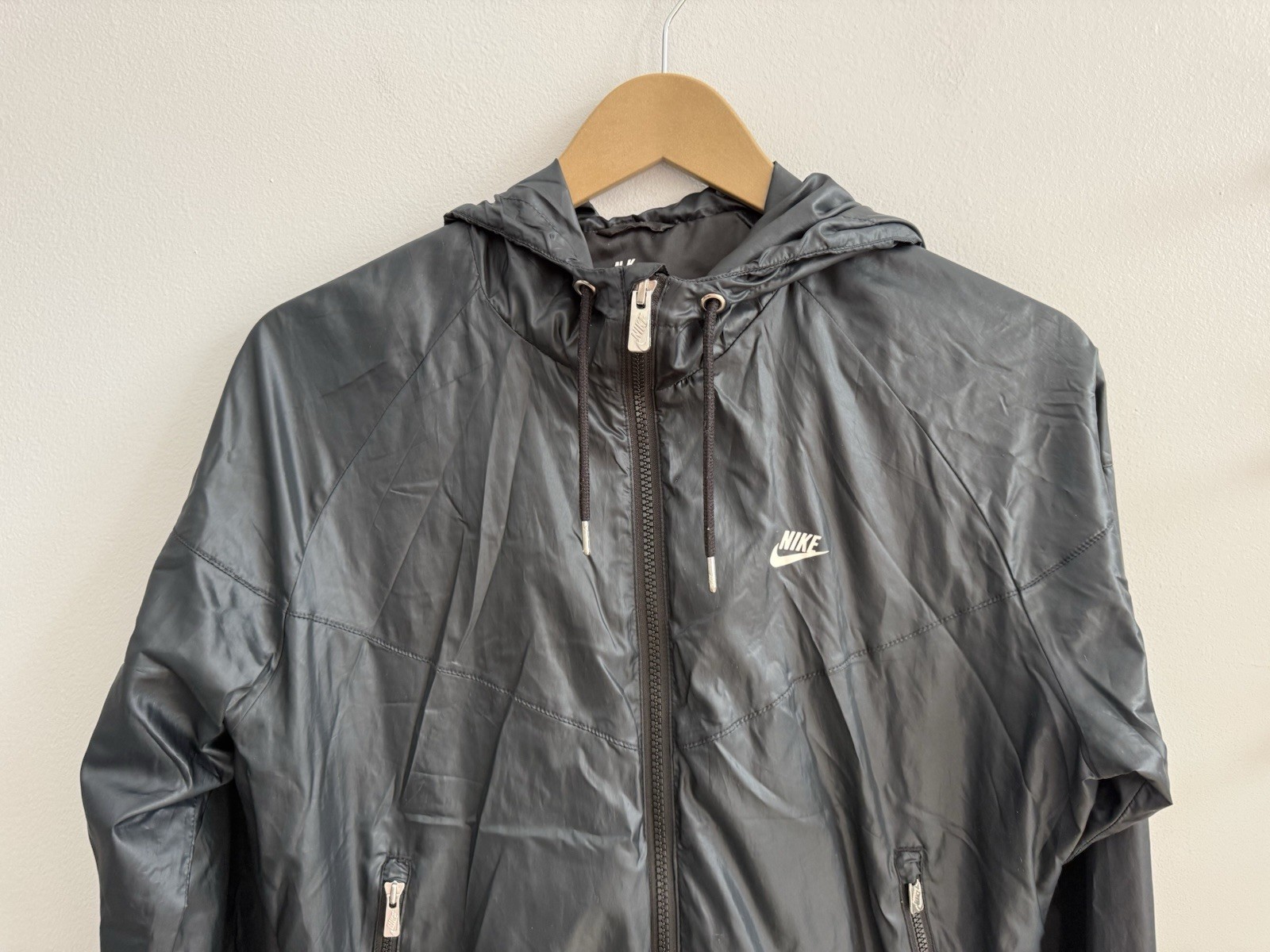 как выглядит Nike Windrunner Jacket In Black Full Zip Hooded Windbreaker Women s Sz M Pockets фото