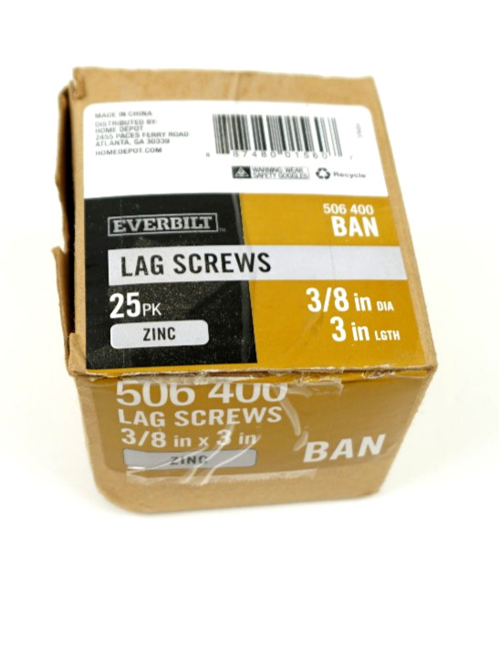 • Everbilt 3/8 in. x 3 in. Hex Zinc Plated Lag Screw 25-Pack BAN