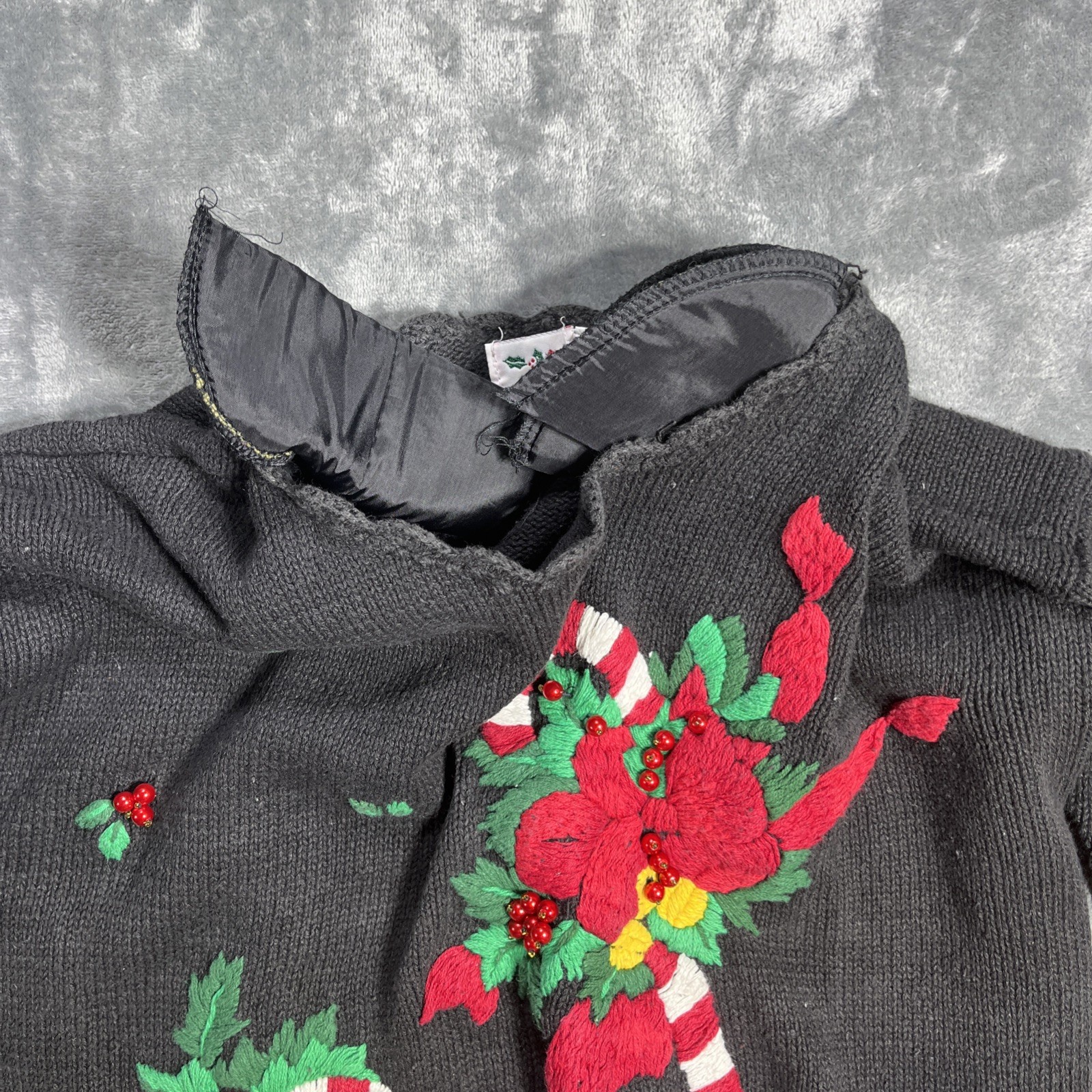 как выглядит Vintage Nutcracker Ugly Christmas Sweater Womens L Black Candy Cane Padded 90s фото