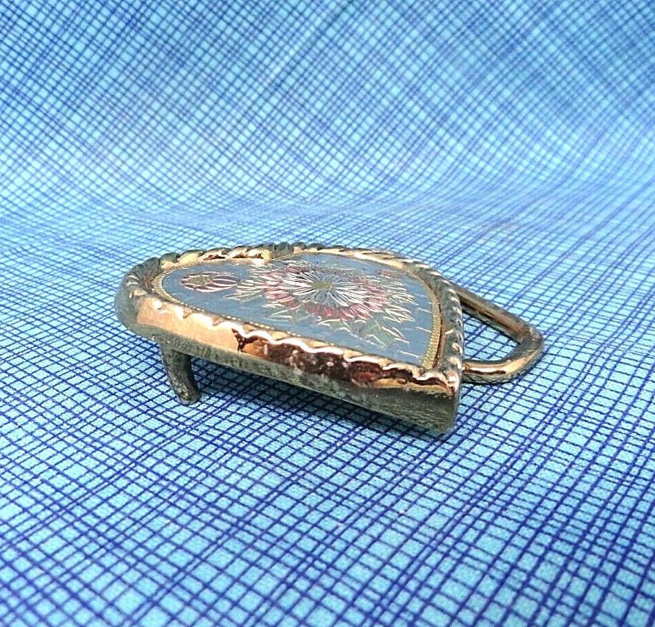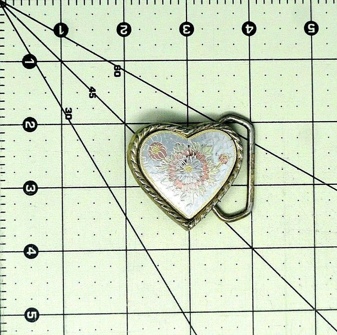 как выглядит Cowgirls Floral Heart Love Belt Buckle Pressed Metal Inlay Vtg 80s W USA .TWY125 фото