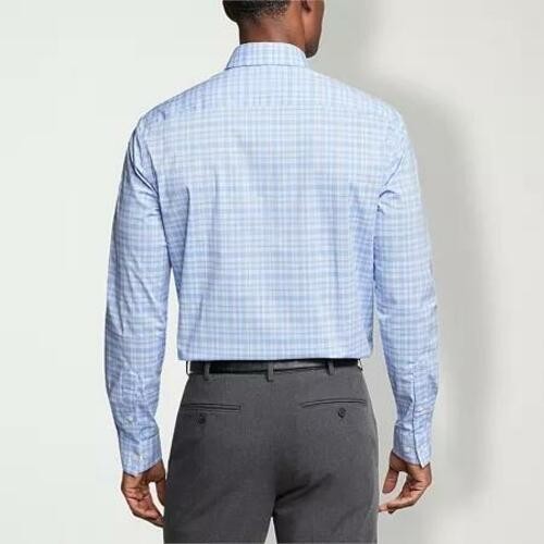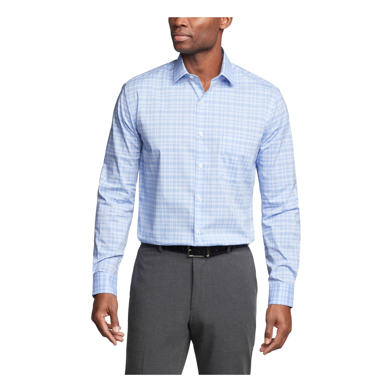 как выглядит Van Heusen Dress Shirt 15-15.5 32/33 Blue Regular Fit Stain Shield Stretch Plaid фото