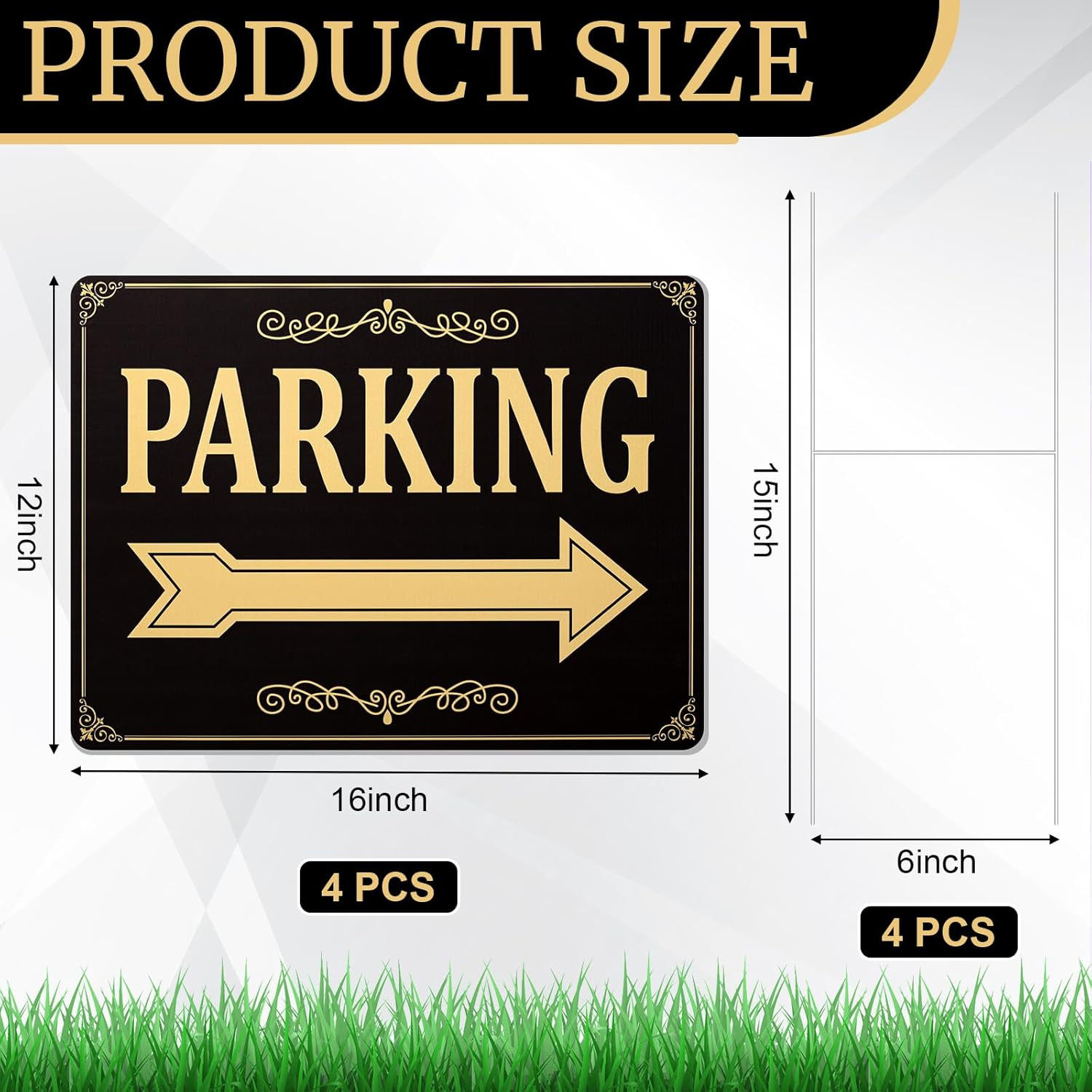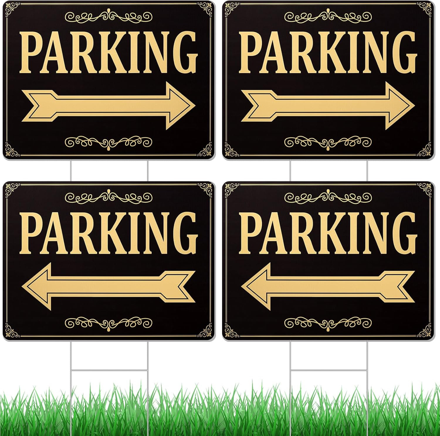 4 Pcs Parking Sign with Metal H Stake Double Sided Event Parking Sign Corrugated