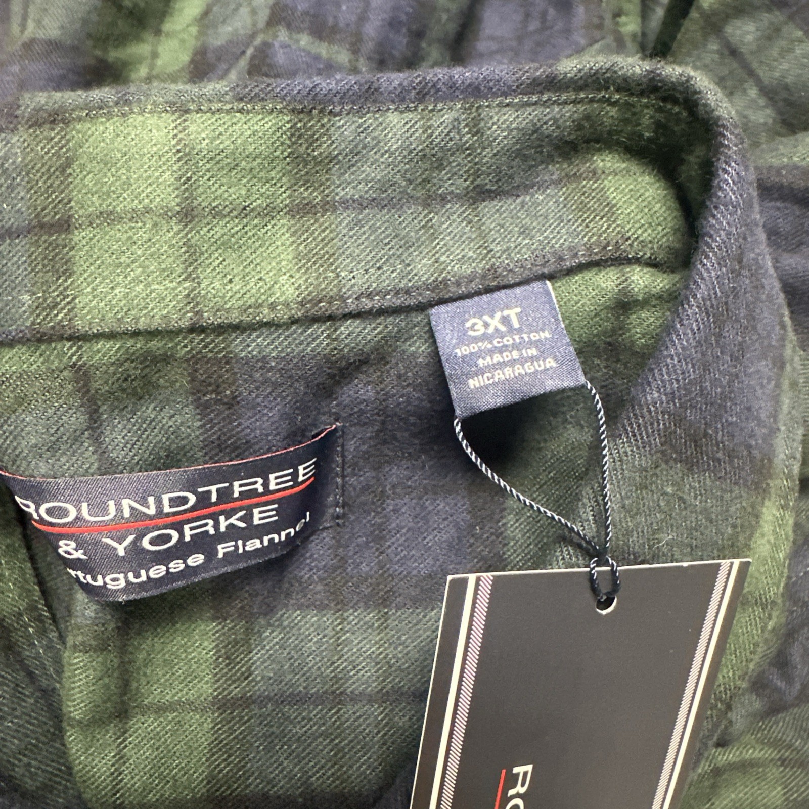 как выглядит Roundtree Yorke Men Shirt 3XT Button Up Portuguese Flannel Cotton Green Navy фото