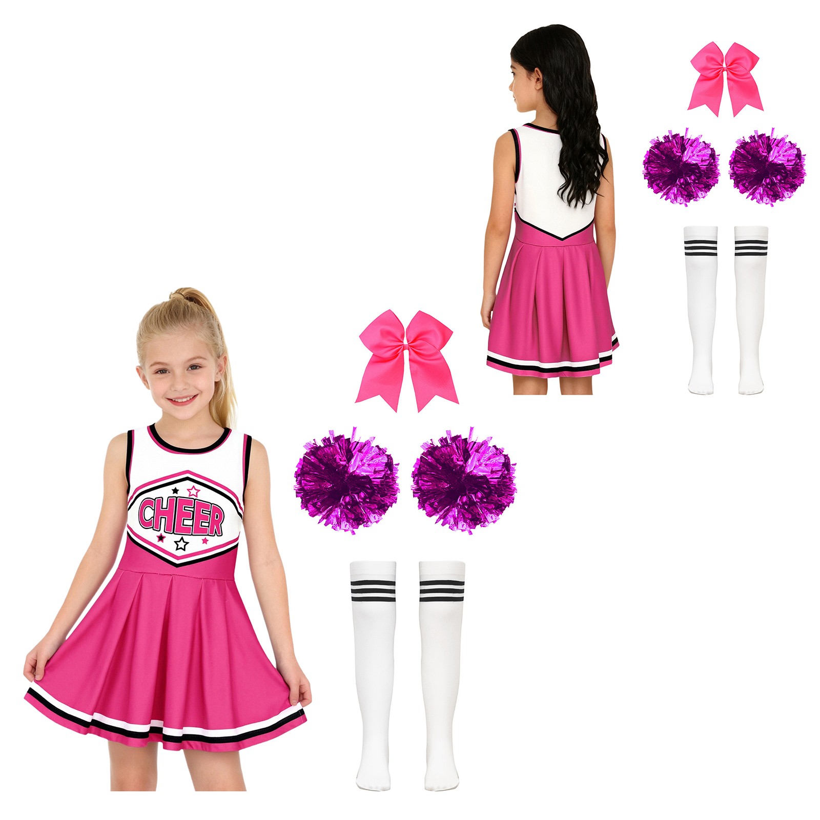 Kids Girls Shiny Cheerleading Dance Dress Cheer Leader Team Uniform Dancewear