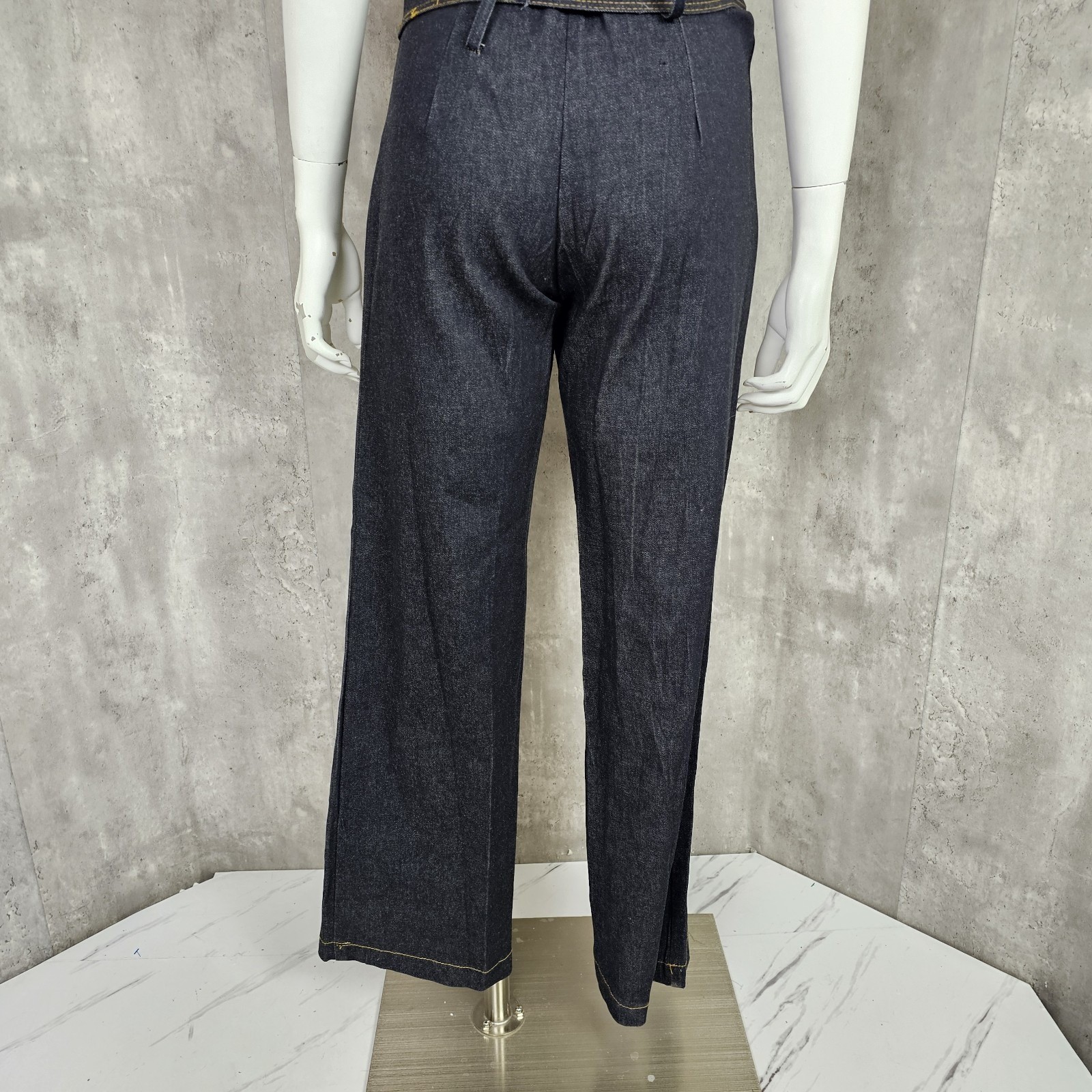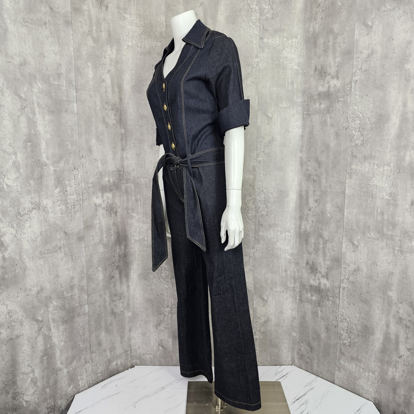 Y2K does 70s Dark Wash Denim Jumpsuit Wide Leg Belted 1 Piece Boiler Retro