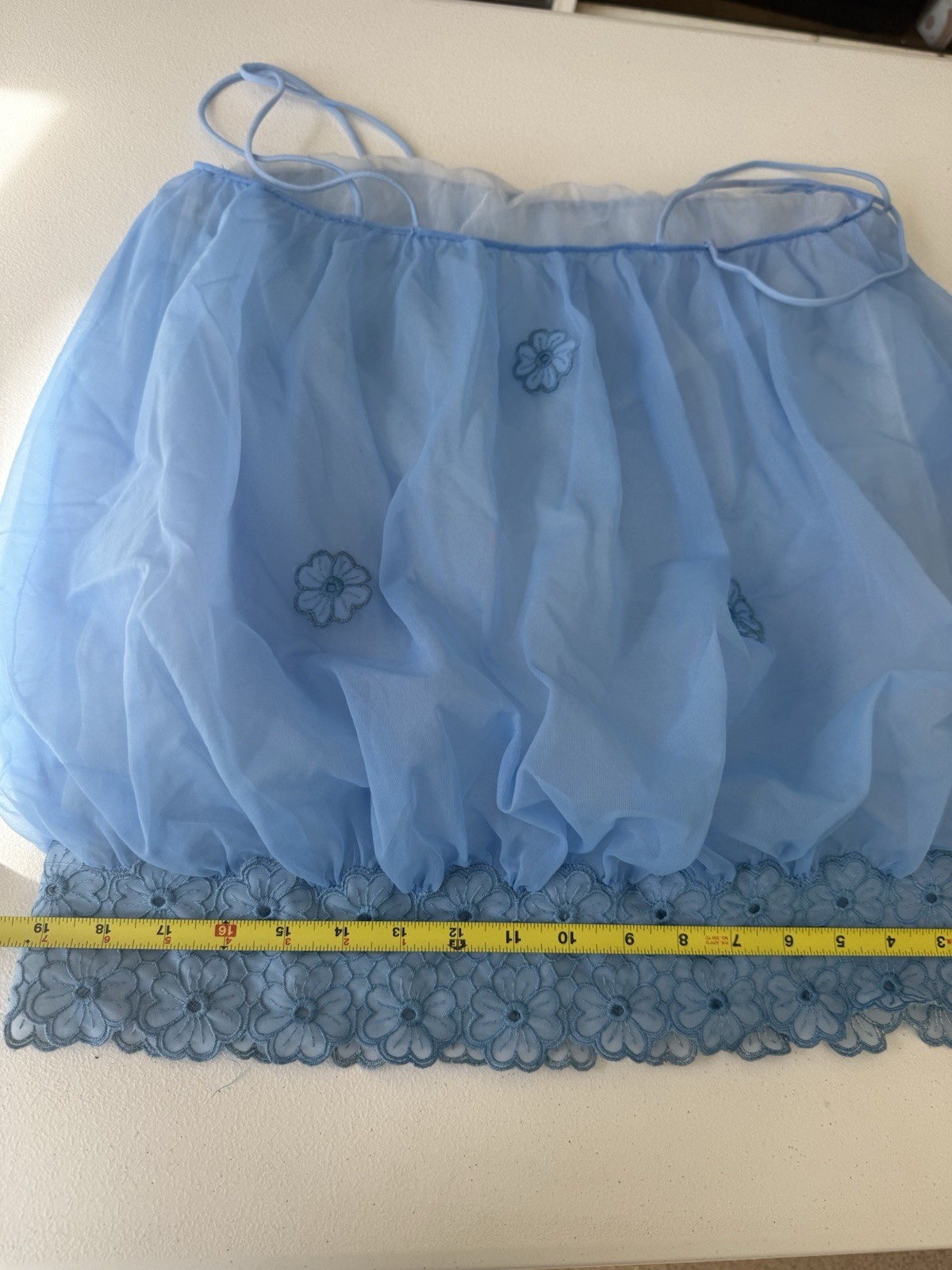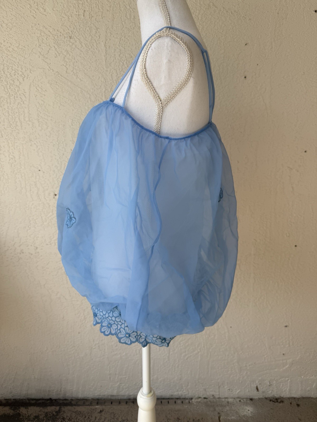 как выглядит RARE Eyeful by Ruth Flaum Nylon Large Baby Blue Floral Bed-Jama Top Semi Sheer фото