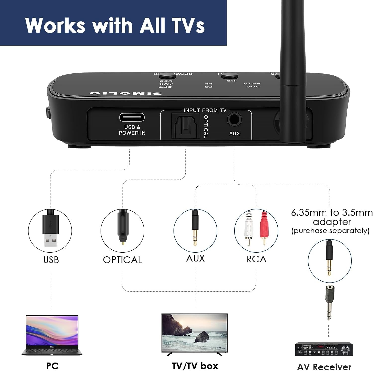 SIMOLIO JH 726B Wireless Headphones w/ Bluetooth Transmitter for TV Watching