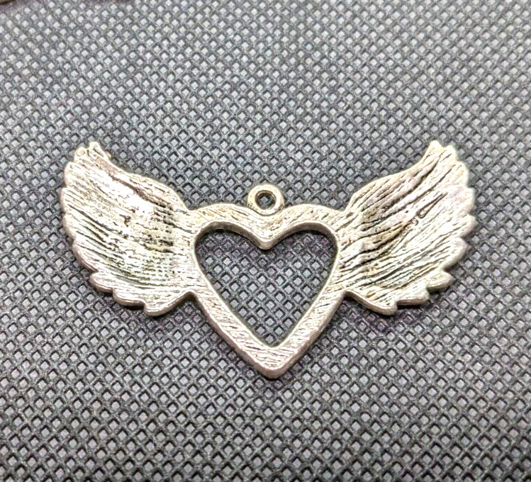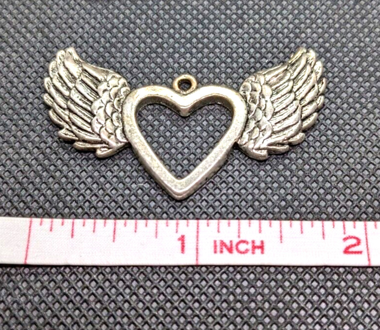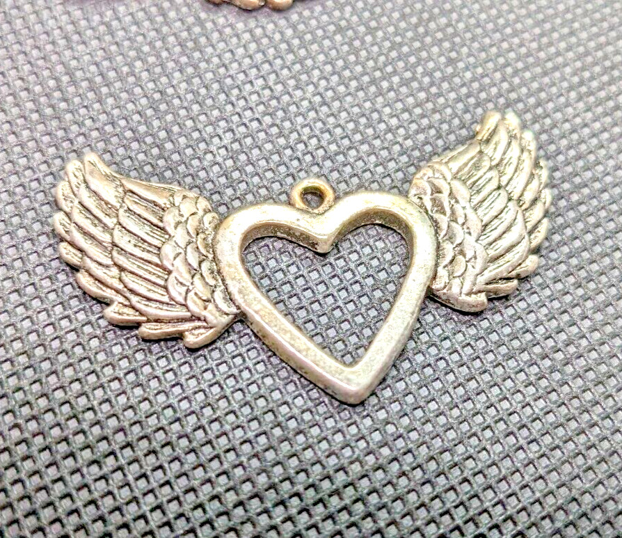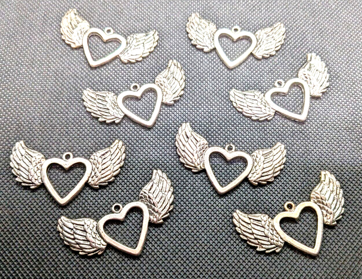 Lot of 8 Metal Silver Color Open Heart Angel Wings Pendants Jewelry Findings