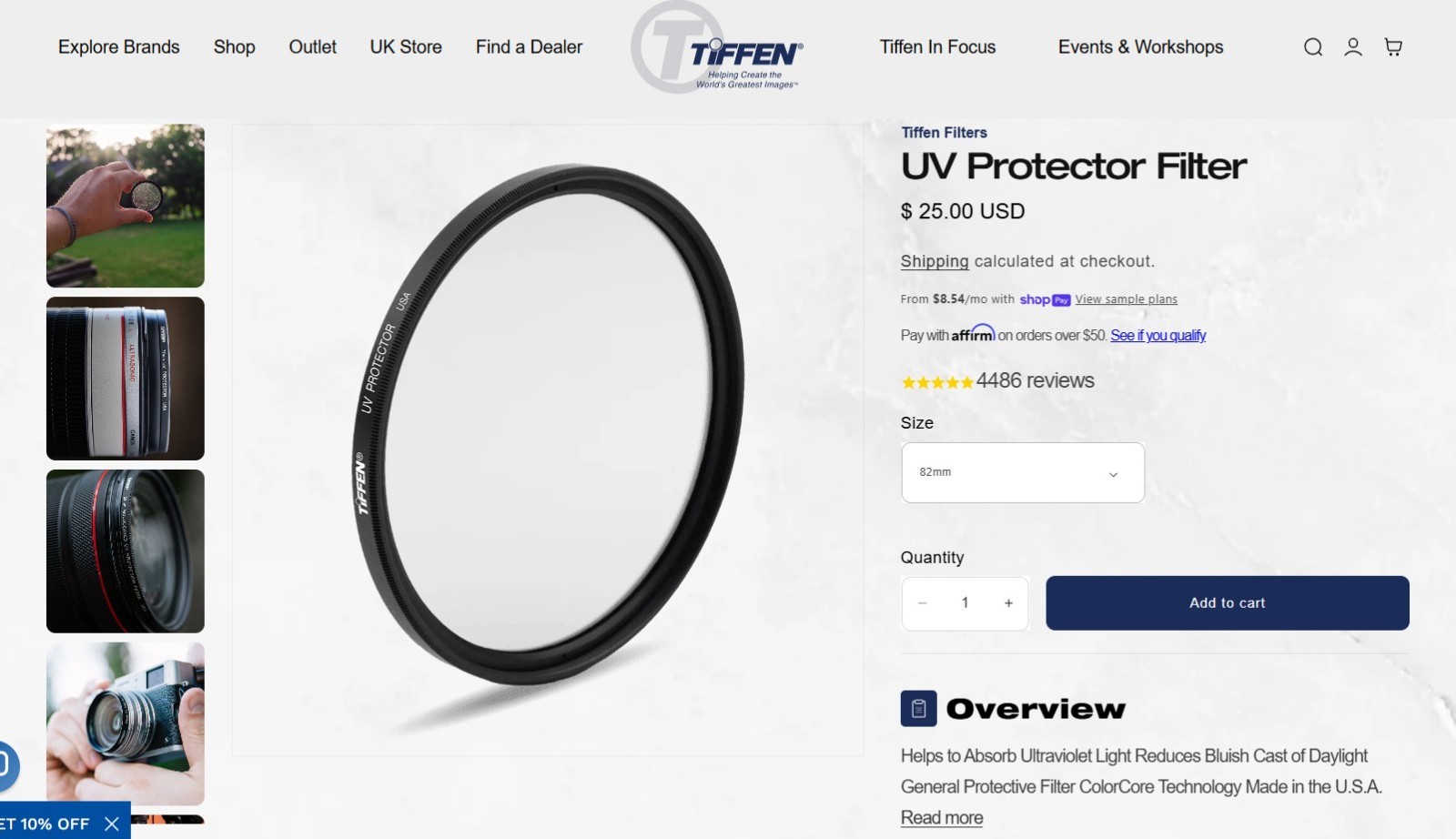 как выглядит 82mm Tiffen UV Protection Filter Made in USA MSRP 25 фото