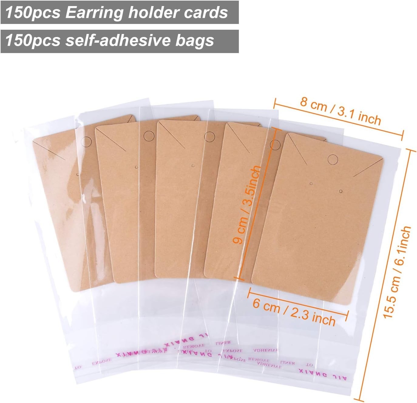 Minimalist Kraft Paper Earring Necklace Display Cards with 150 Bags Included