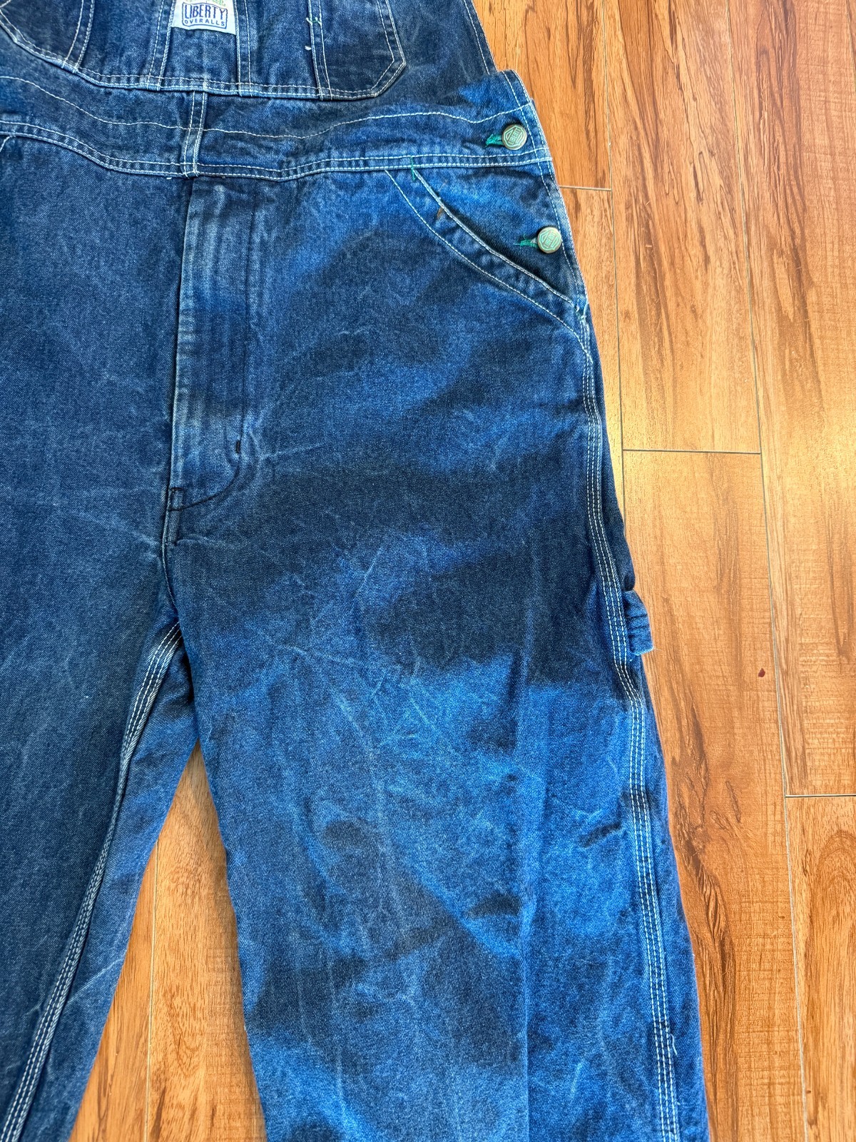 Vintage 90s Liberty Dark Blue Denim Overalls Workwear 34 x 30