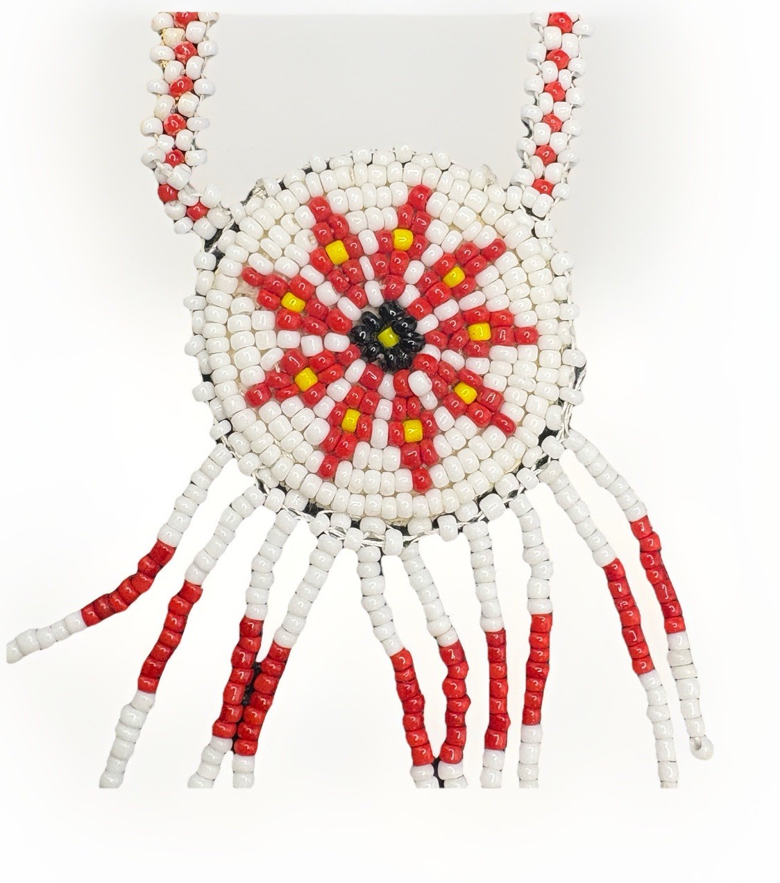Hand-Beaded Native American Medallion Necklace White Red Yellow 24