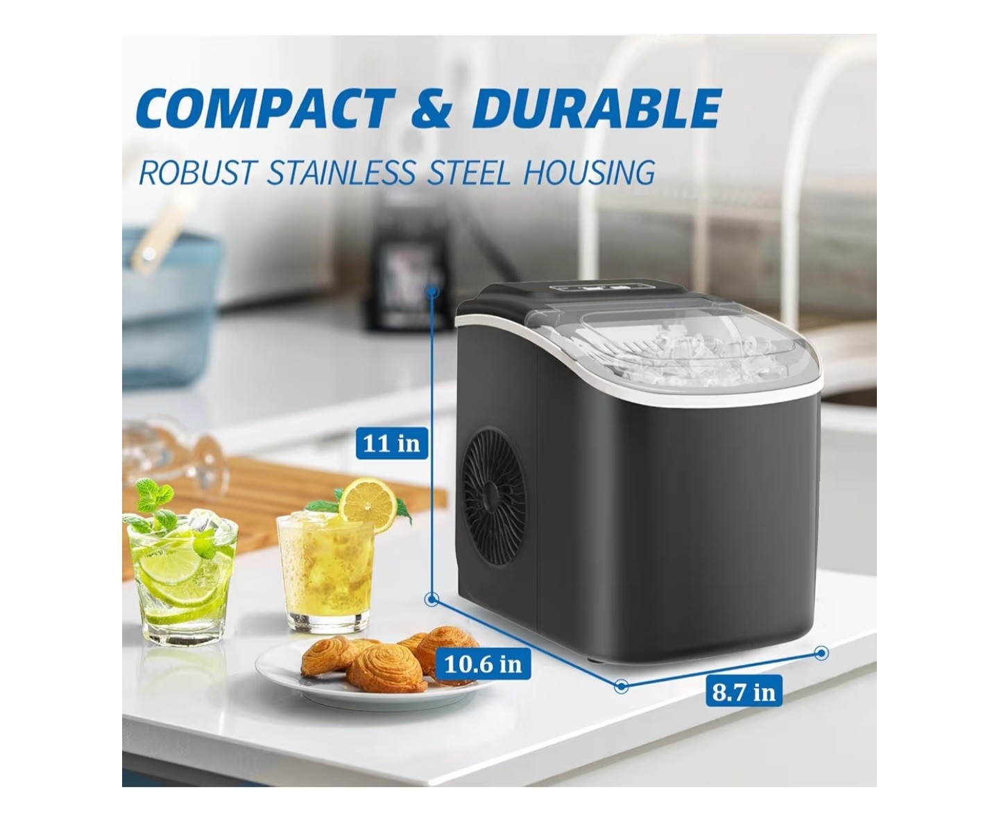 Countertop Ice Maker Portable Self-Cleaning 26lbs/24h Black Bullet Cubes