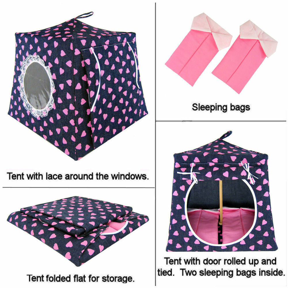 как выглядит Navy Blue, Heart Print Toy Play Folding Camping Tent, 2 Sleeping Bags, Handmade фото