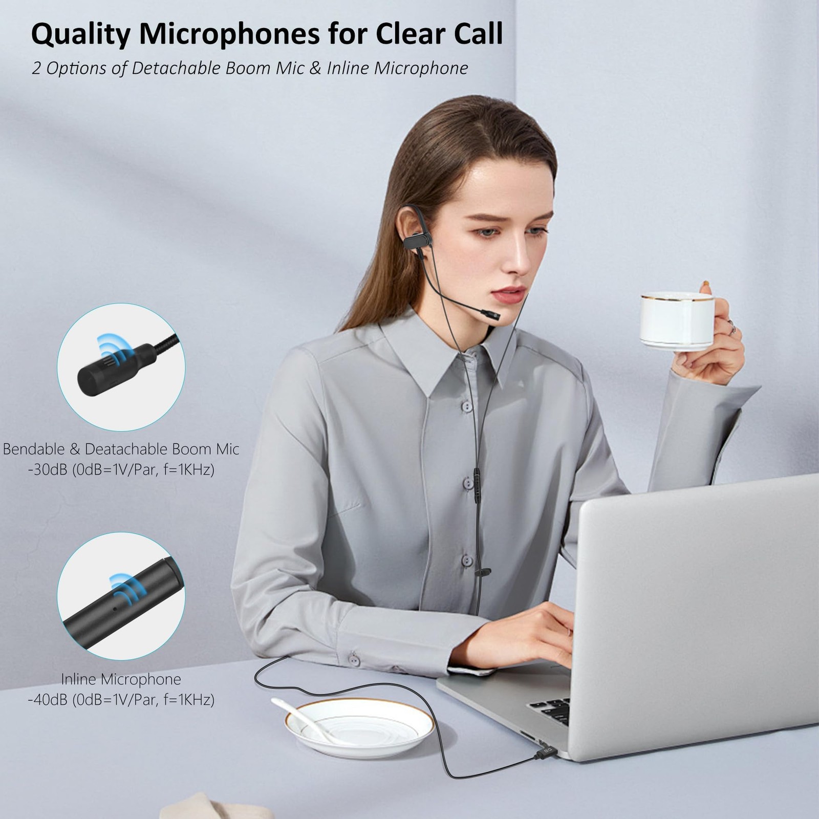 USB C A Earbuds with Boom Mic for Smartphones Computers, Small, Black