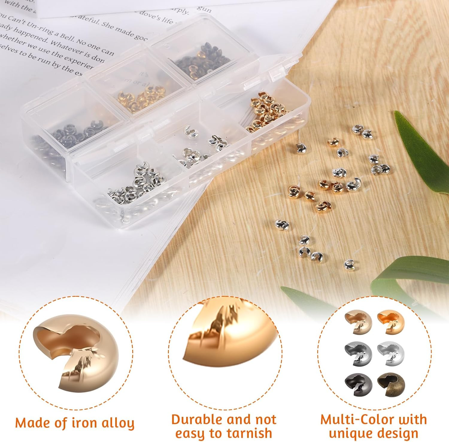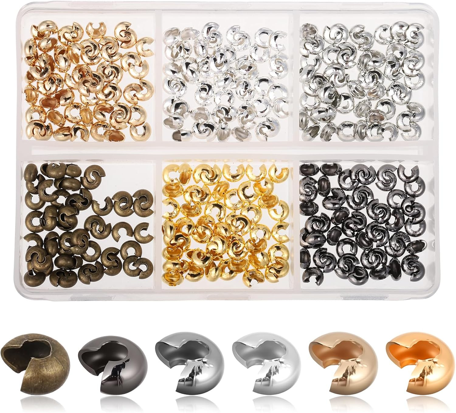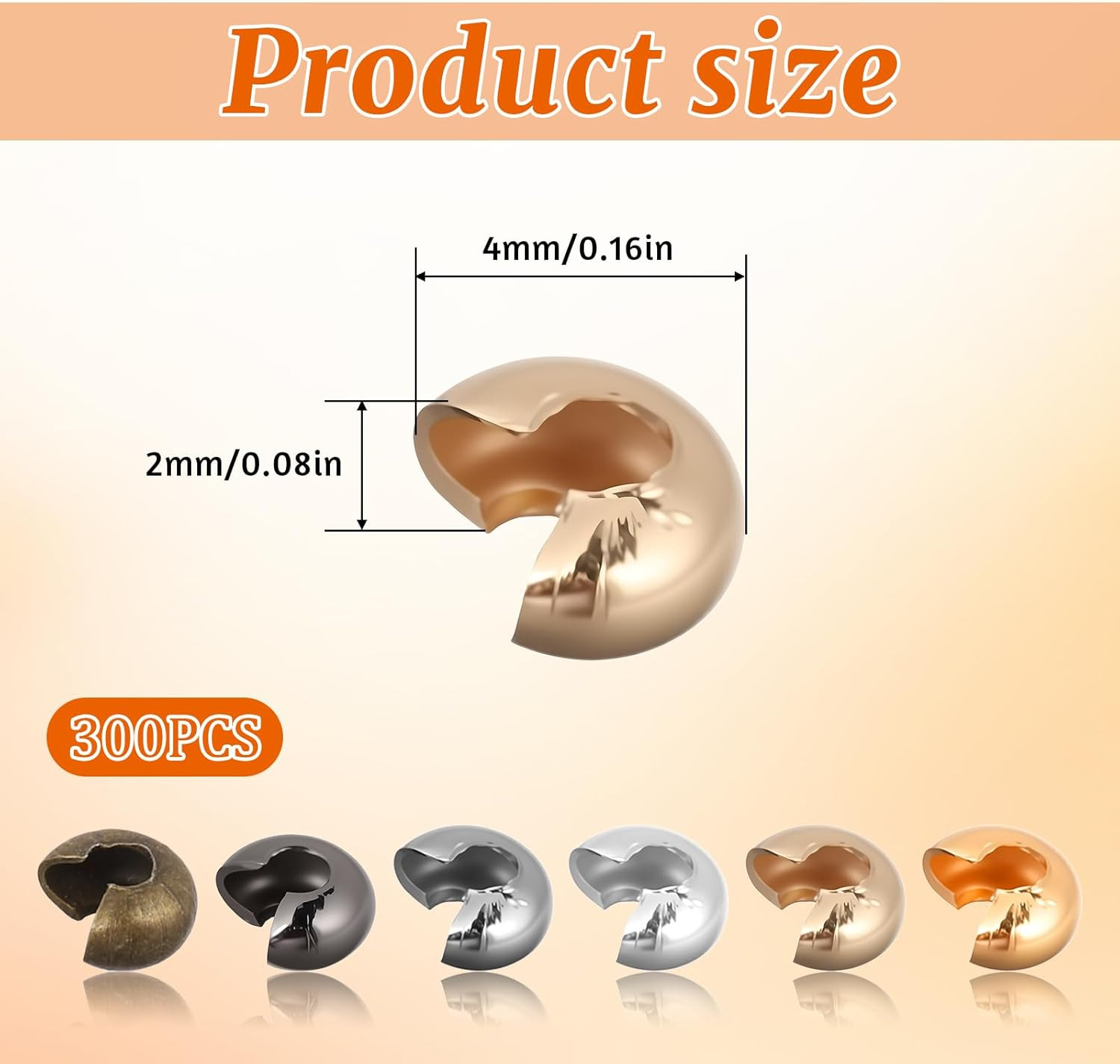 300 Pcs Crimp Beads for Jewelry Making, 4Mm Multi-Color Alloy Crimp Bead Knot Co