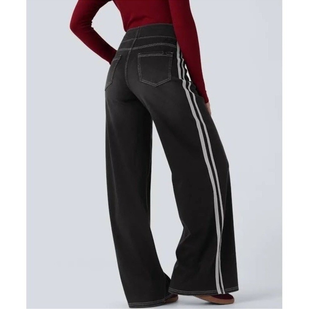 HALARA Black High Magic Flex Waisted Wide-Leg Jeans with White Stripes NWOT
