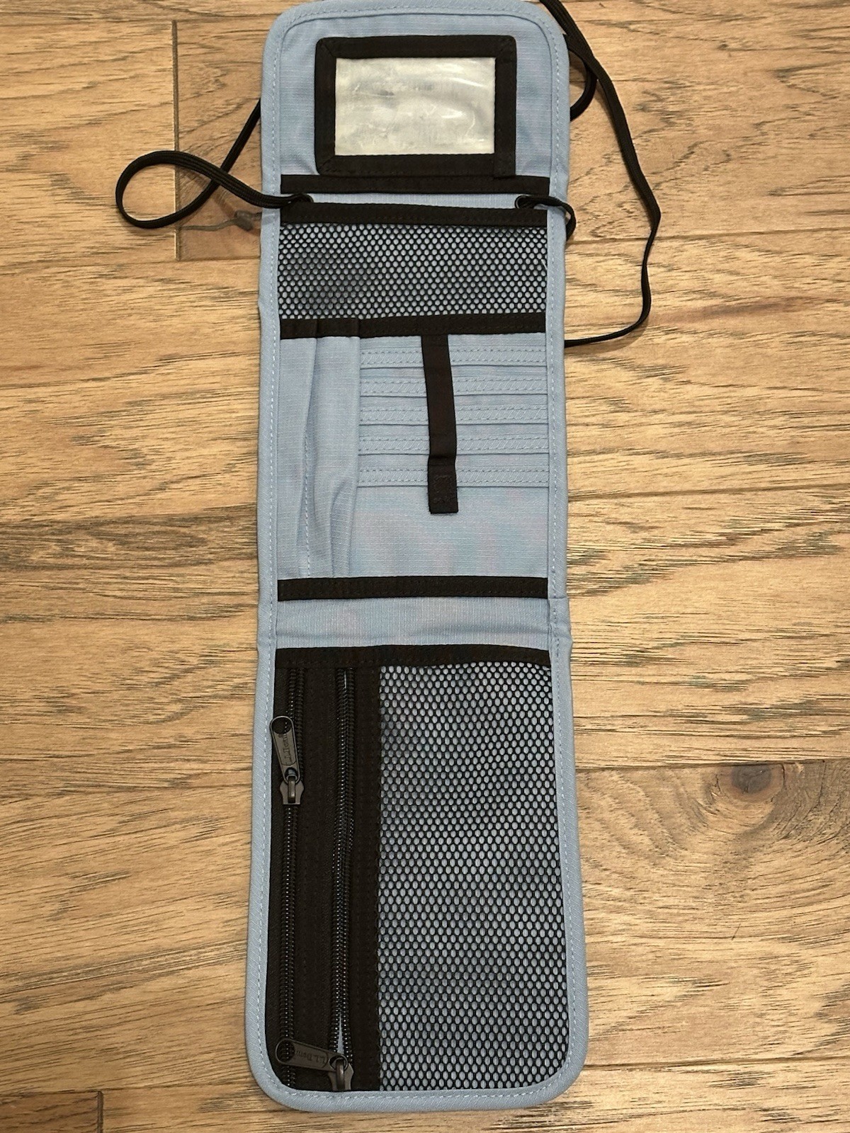 L L Bean Crossbody Travel Wallet Fold Up Organizer Zip Blue Black Bag