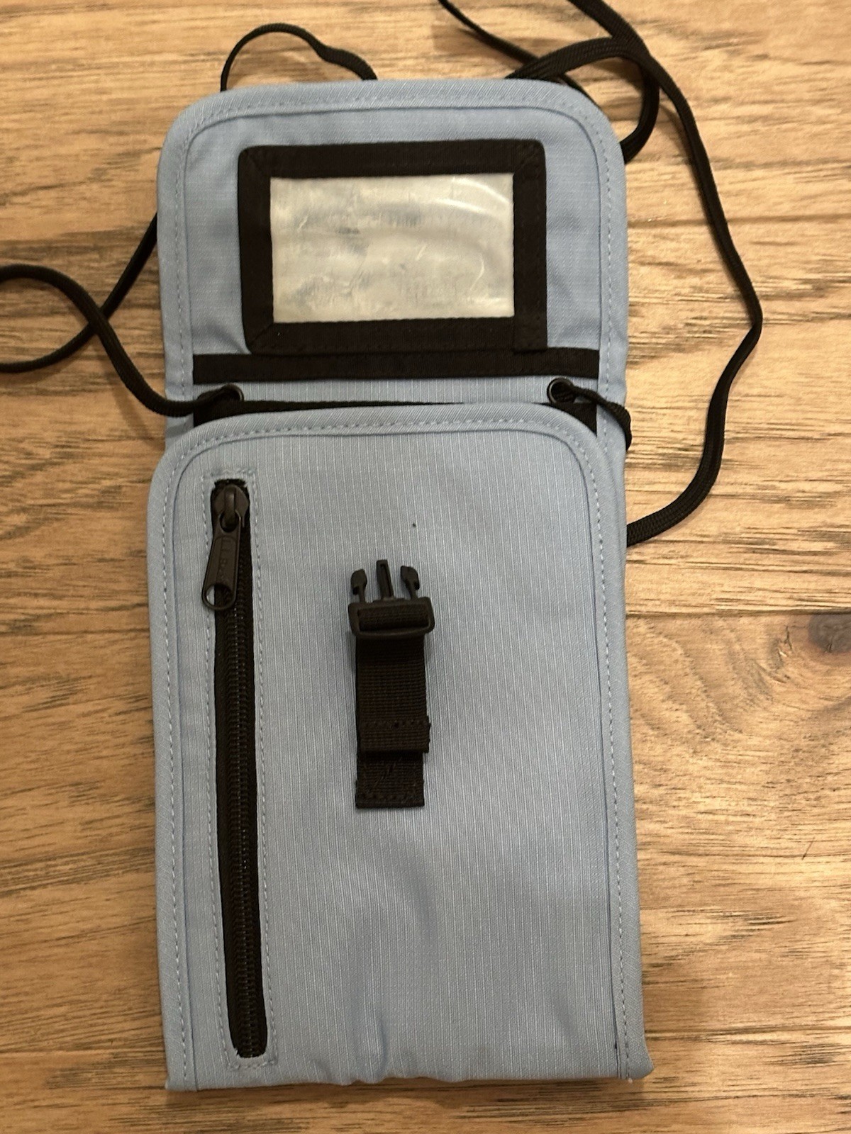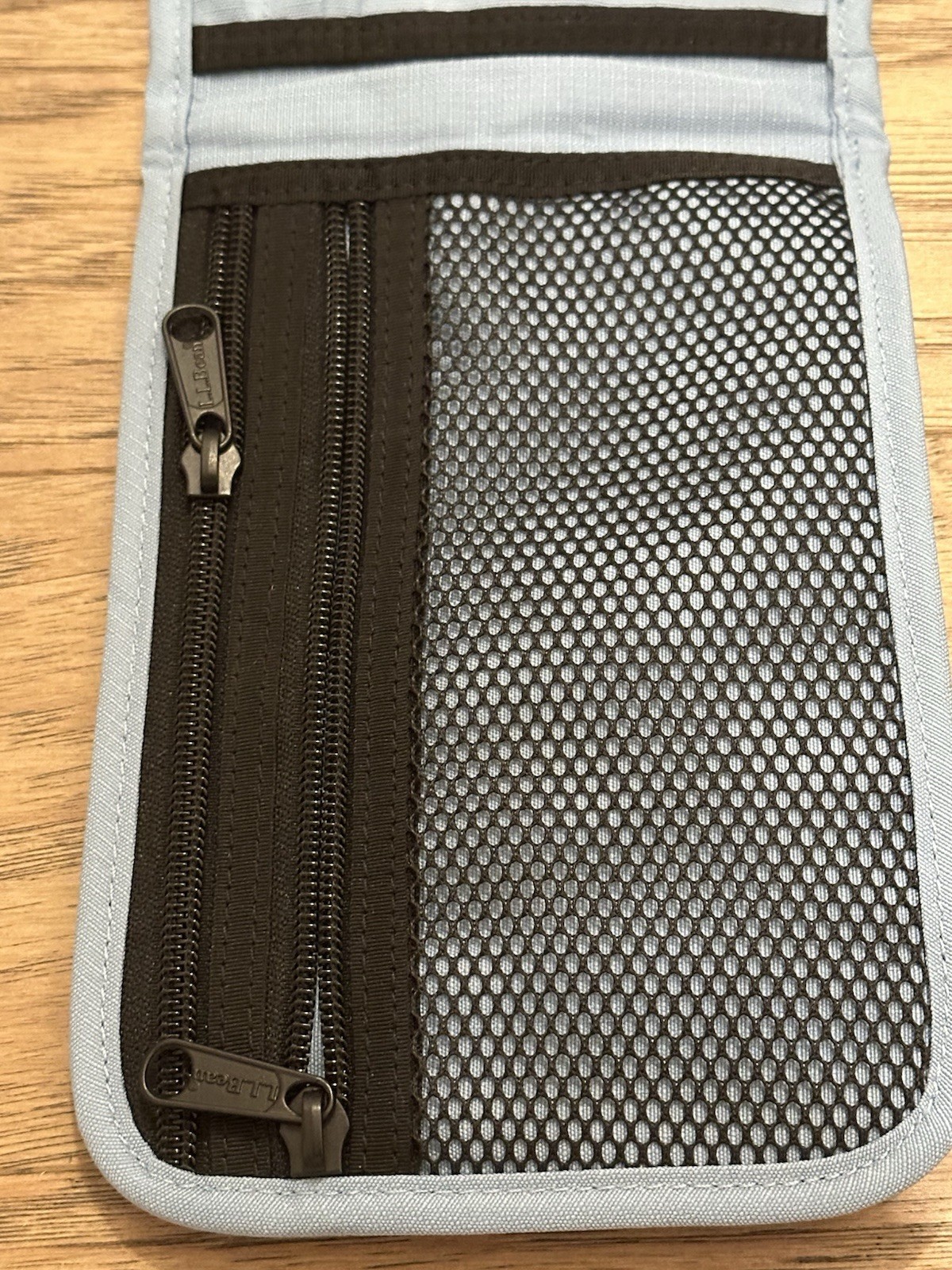 как выглядит L L Bean Crossbody Travel Wallet Fold Up Organizer Zip Blue Black Bag фото