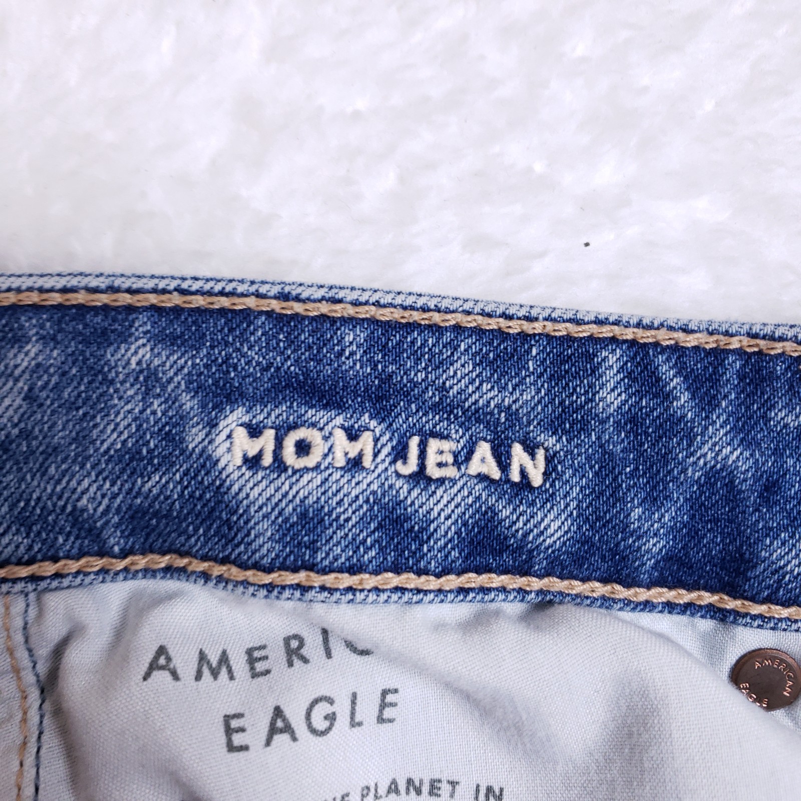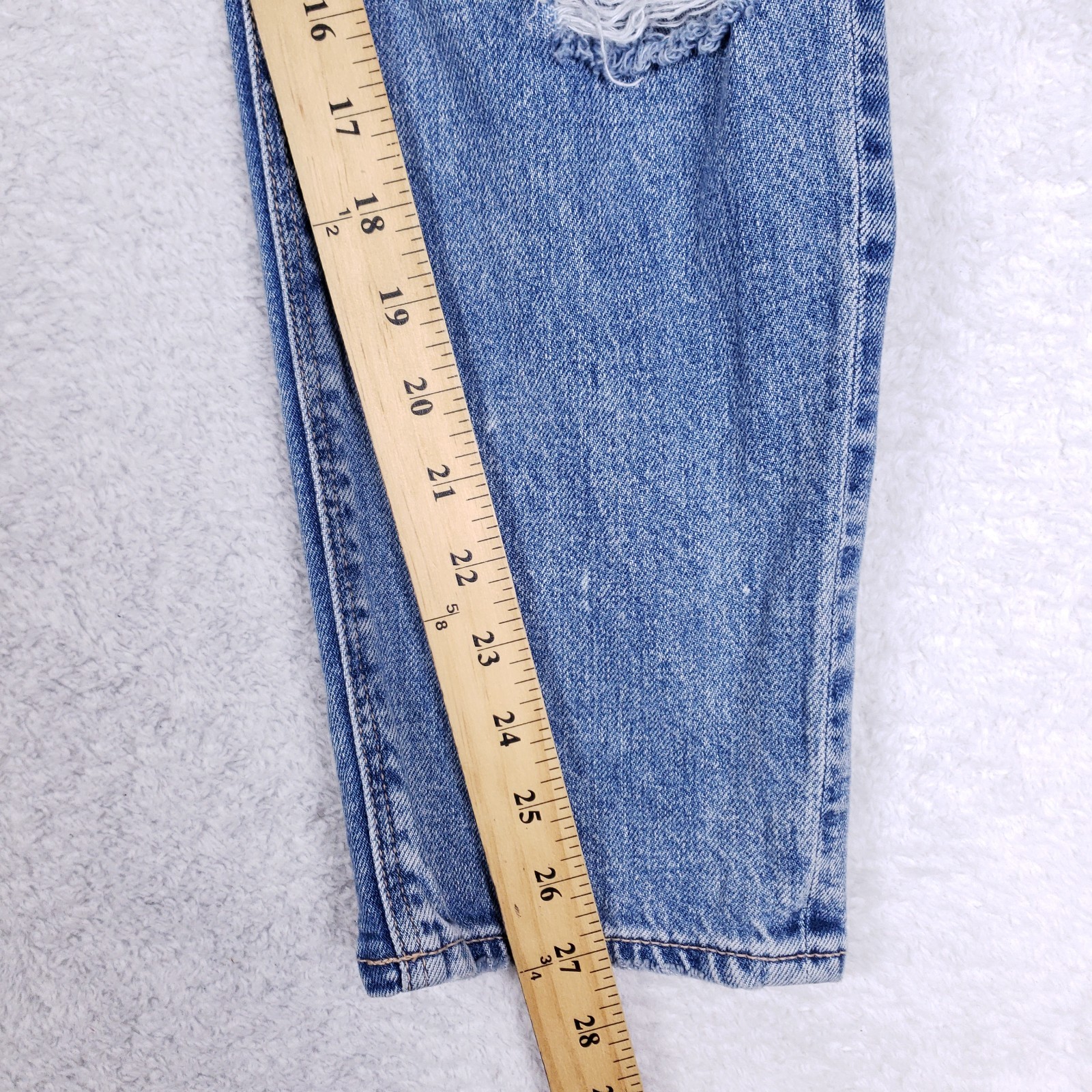 как выглядит American Eagle Mom Jeans 6 Short Distressed High Rise Blue Denim Ripped Relaxed фото
