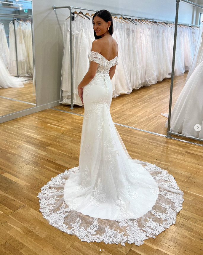 как выглядит Mermaid Wedding Dresses Off Shoulder Lace Applique Sweep Train Bridal Gown фото