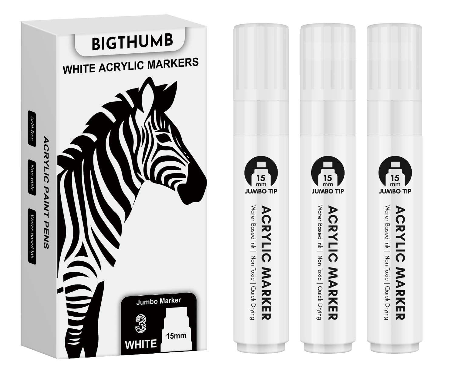 BIGTHUMB Thick White Jumbo Poster Markers: 3 Pcs 1 Count Pack of 3 ,