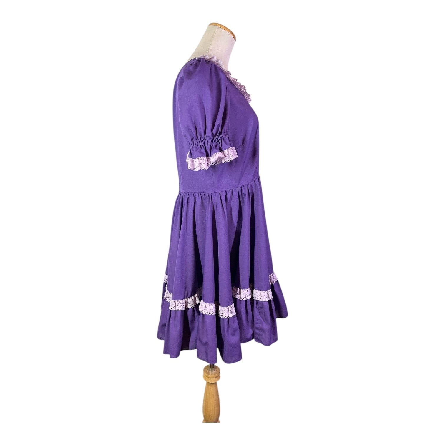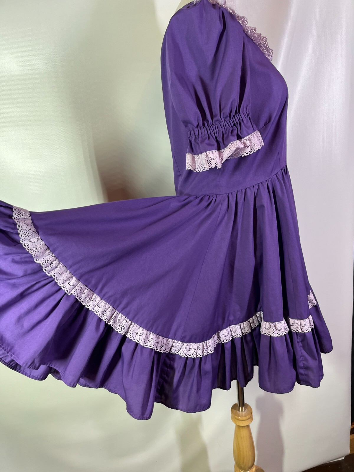 Vintage Homemade Square Dancing Dress Circle Skirt Ruffled Purple