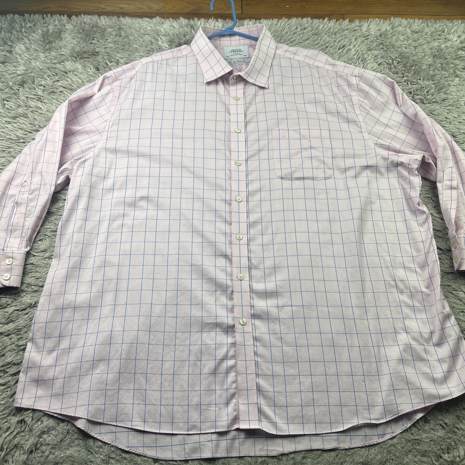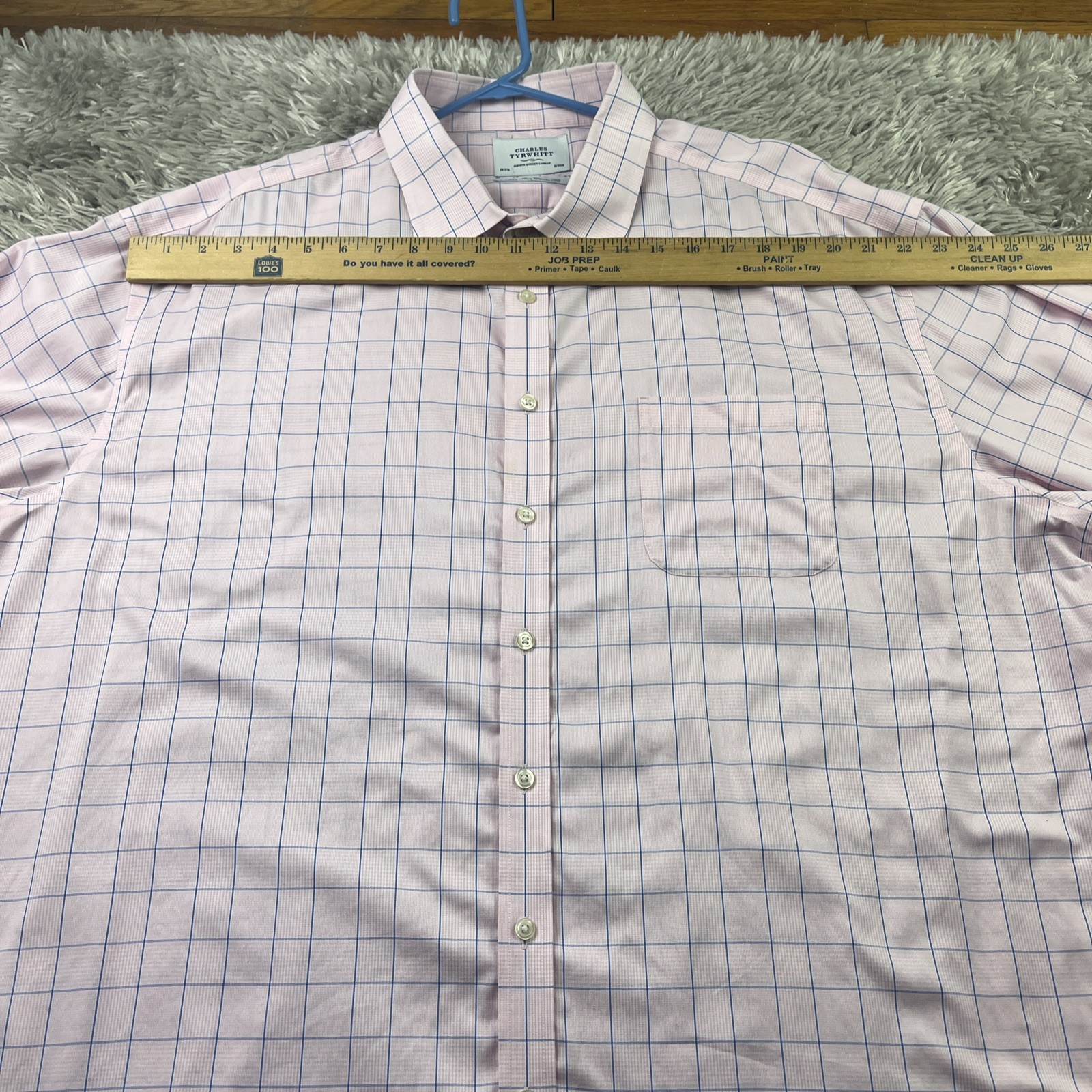 как выглядит Charles Tyrwhitt Mens 20/37 plaid Non-Iron Classic Fit Dress Shirt SHORT ARMS фото